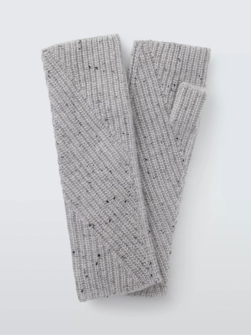Donegal Ribbed Cashmere Handwarmers, Grey