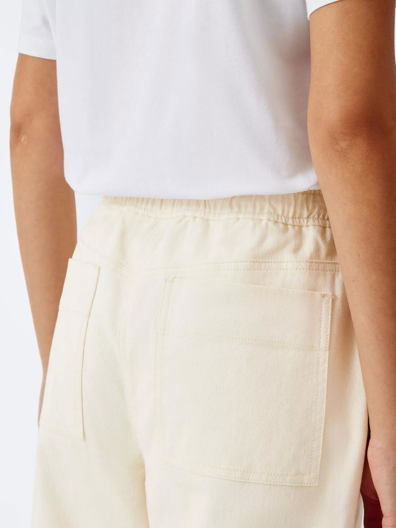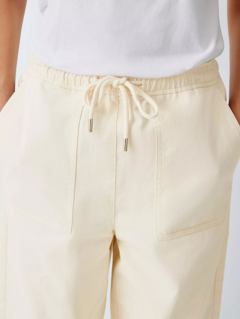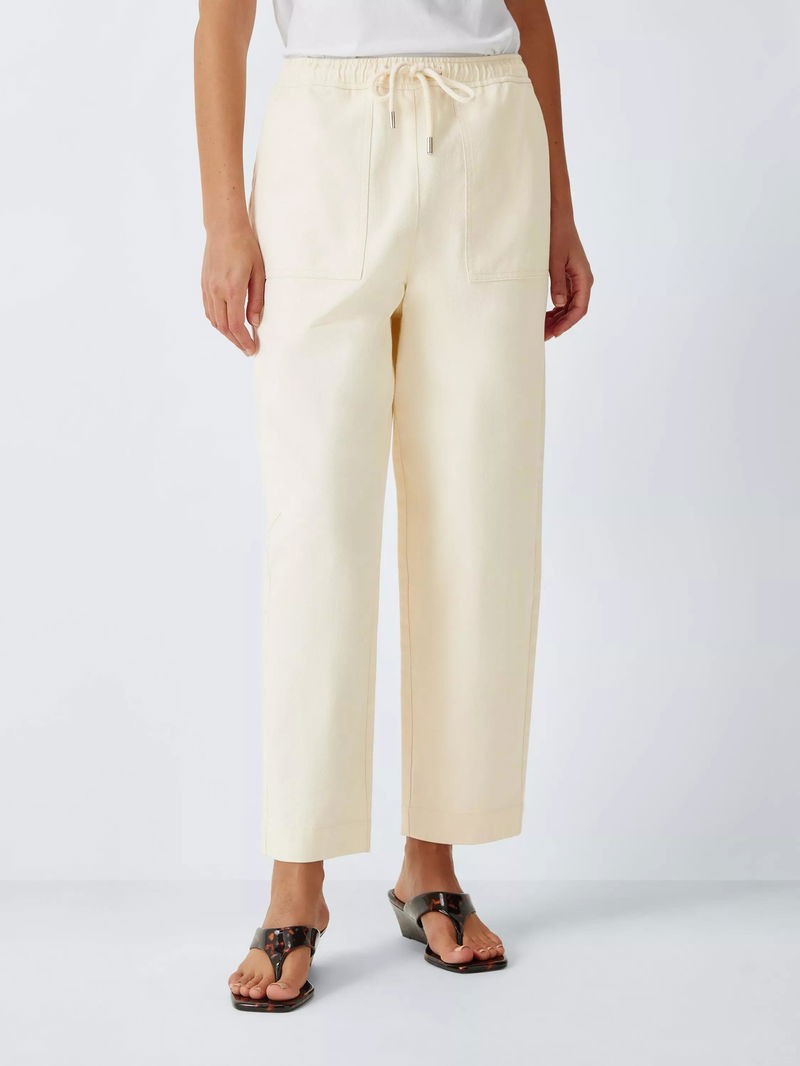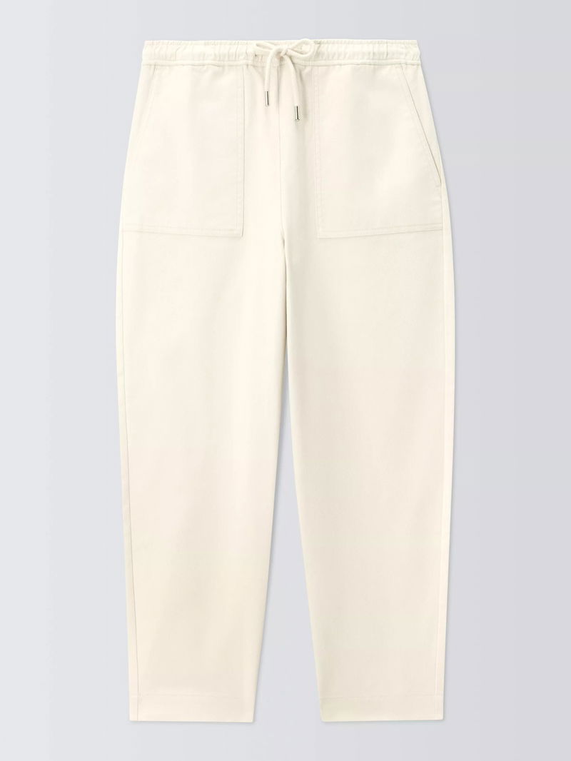 Drawstring Waist Cotton Ankle Trousers, Ecru