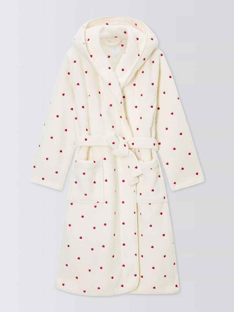 Embroidered Heart Borg Dressing Gown, Ivory/Red