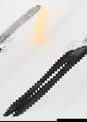 Faux Leather Straight Leg Tailored Trousers, Black