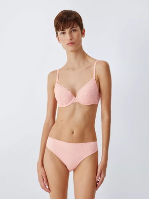 This underwired plunge bra has a lace overlay on the cups for that pretty, feminine touch.