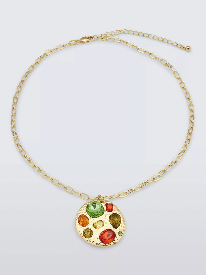 Gem Disc Pendant Necklace, Multi/Gold