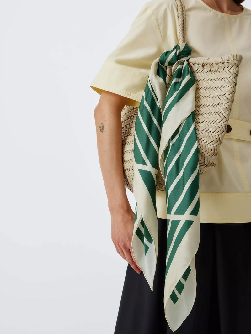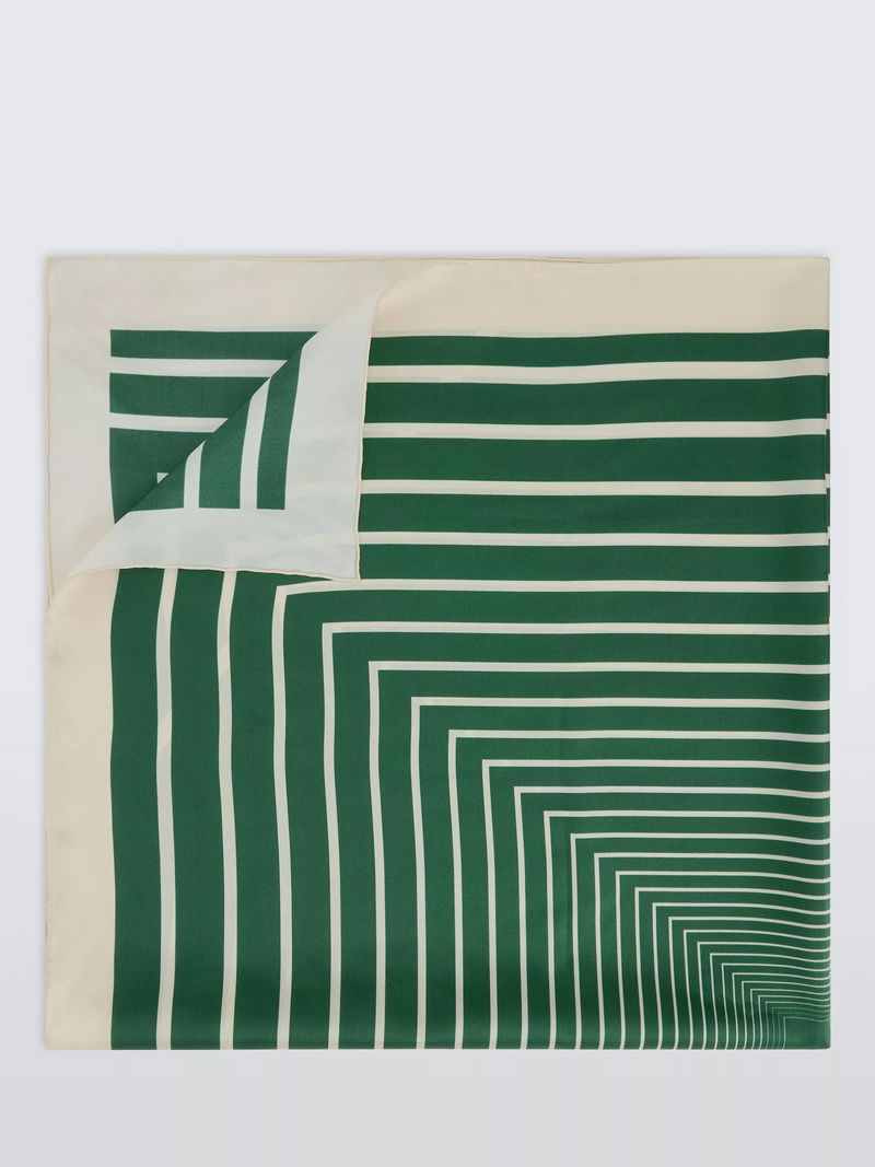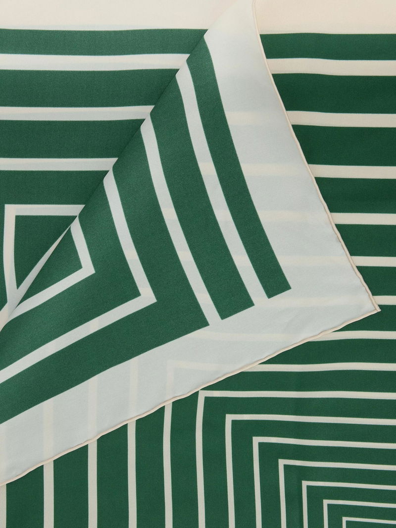 Geometric Stripe Pure Silk Scarf, Green