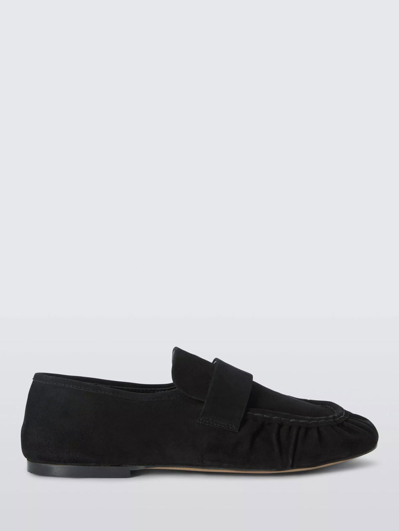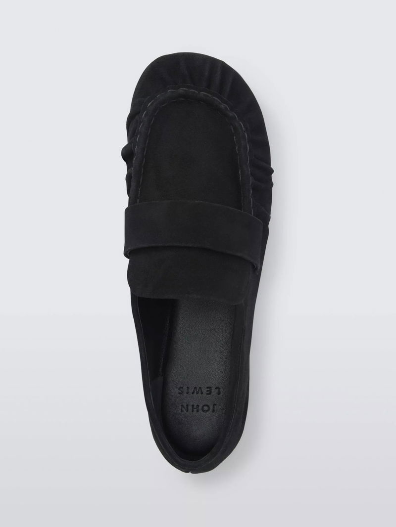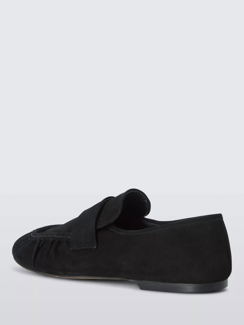Georgie Suede Round Toe Ruched Apron Loafers, Black