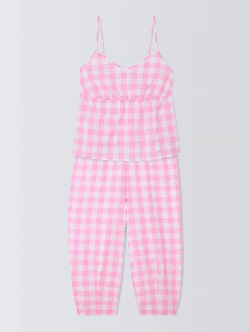 Gingham Camisole Barrel Leg Pyjama Set, Pink Lavender