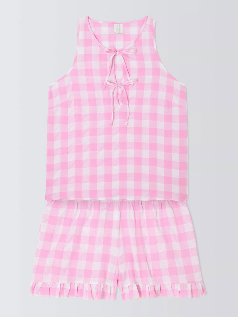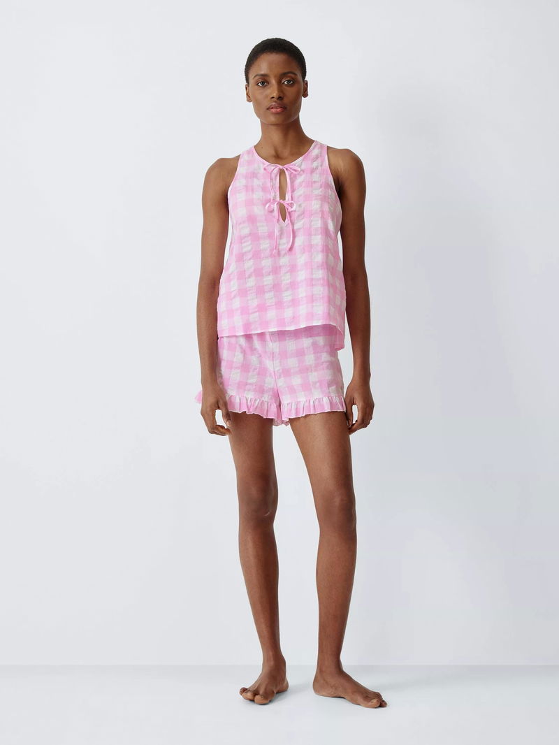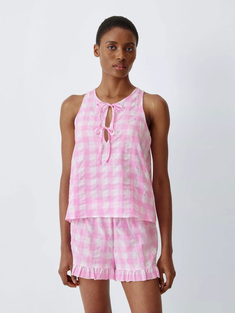 Gingham Pure Cotton Sleeveless Short Pyjama Set, Pink Lavender