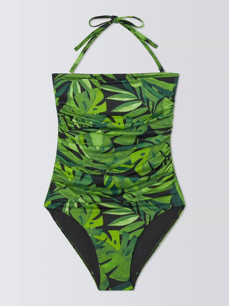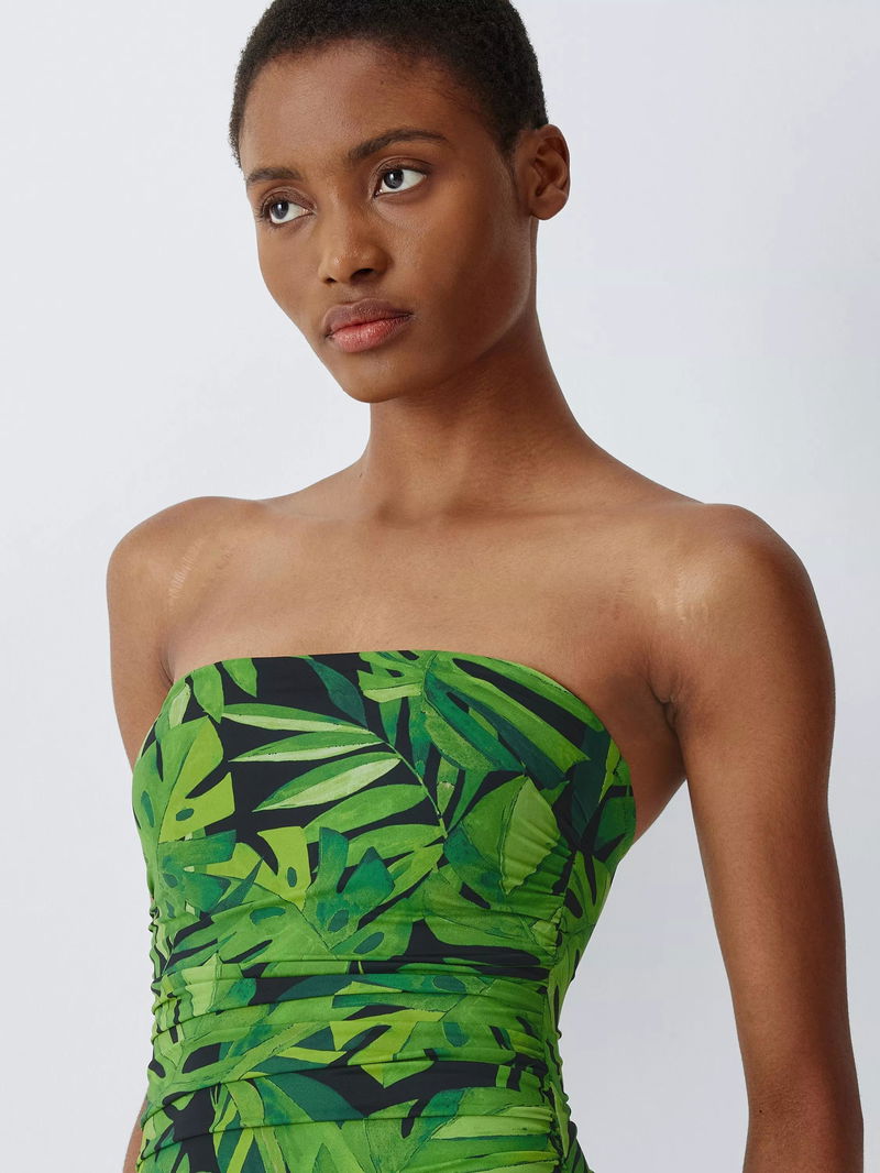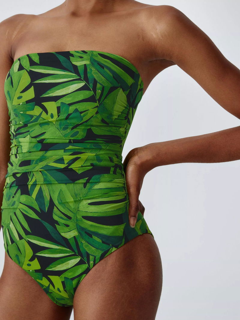 Grenada Palm Rouched Bandeau Swimsuit, Green Palm