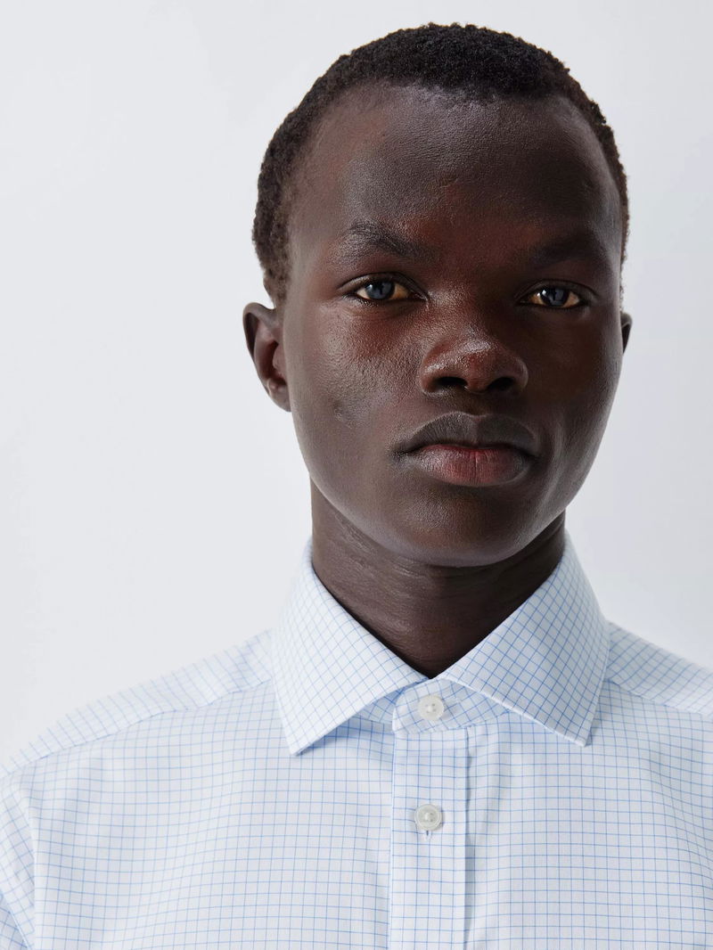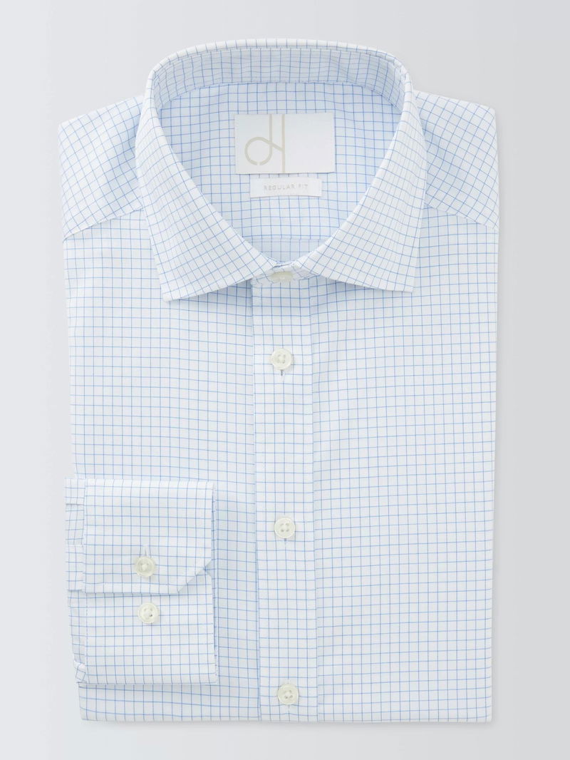 Grid Check Regular Fit Cotton Shirt, White
