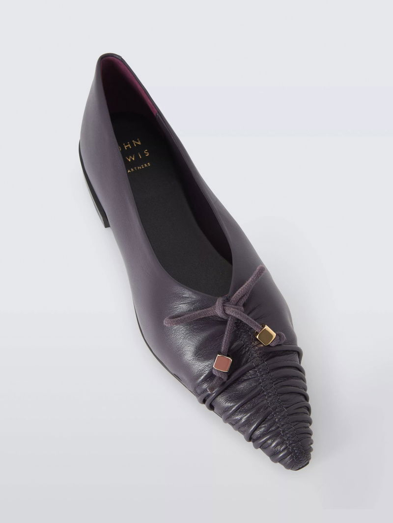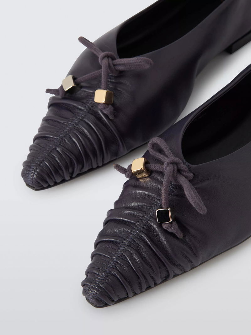 Harleston is a sophisticated reinvention of the classic ballet flat, transforming the foundational shoe into a piece of everyday luxury. Crafted in leather, they feature delicate ruched detailing across the vamp, which creates a soft, gathered texture.