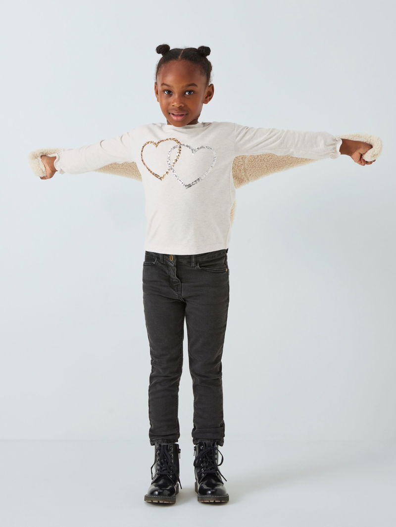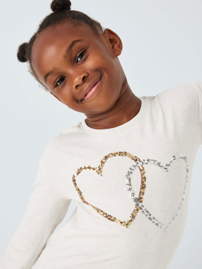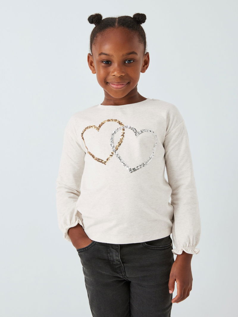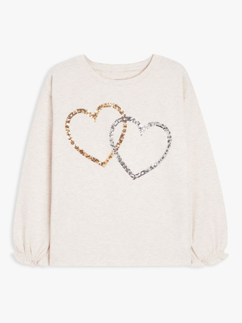 A sparkling twist on the classic cotton jersey, this top comes with a cute sequin heart design and on-trend ruffle cuffs.