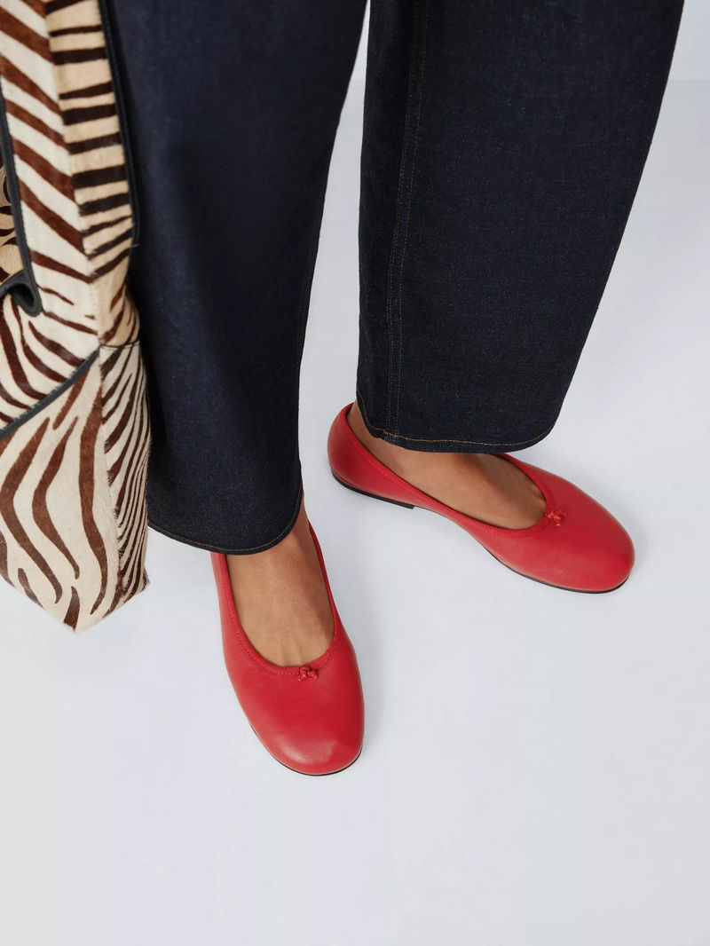 Hero Leather Knot Detail Ballerina Pumps, Red