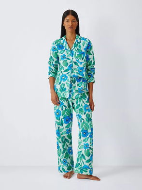 In a classic herringbone texture, this pure cotton pyjama set comes in two pieces. The top has a smart collar and fabric-covered buttons, whilst the bottoms feature a fully elasticated waistband with a drawcord and handy side pockets.