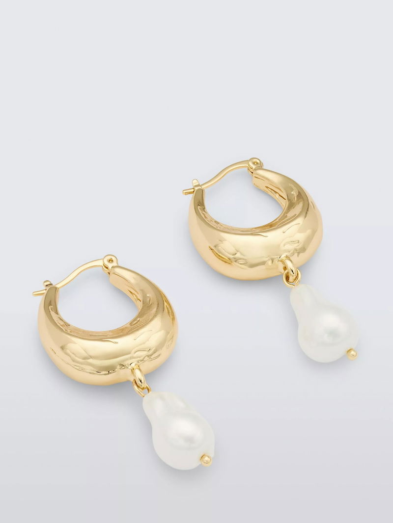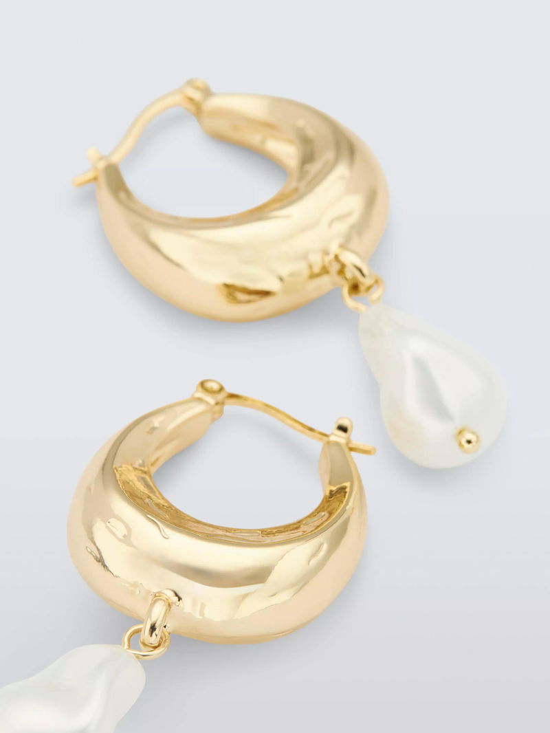 Hinged Wide Hollow Hoop And Pearl Drop Earrings, Gold