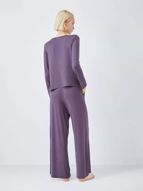 Holly Long Wide Leg Pyjama Set, Red/Ivory