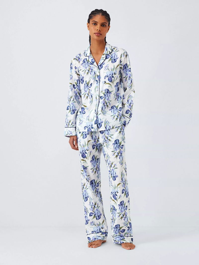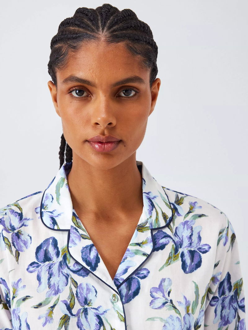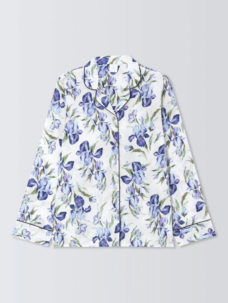 Iris Floral Long Sleeve Pyjama Shirt, Ivory/Blue