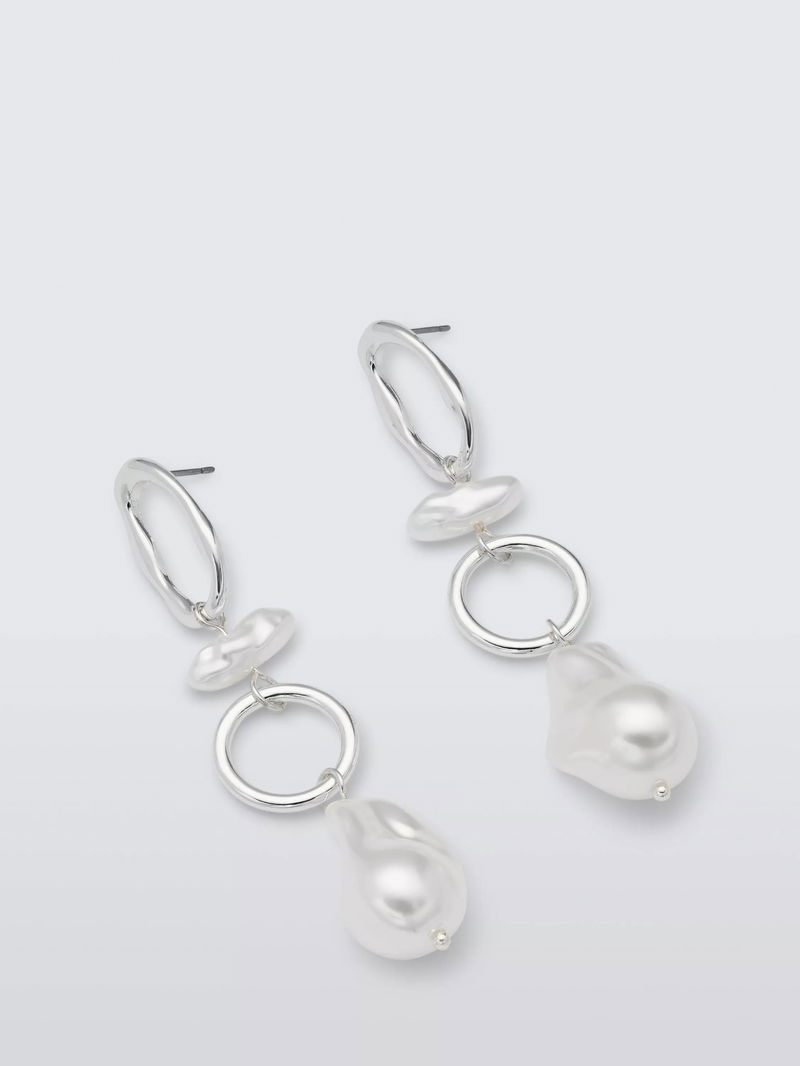 Irregular Faux Pearl Link Drop Earrings, Silver/White