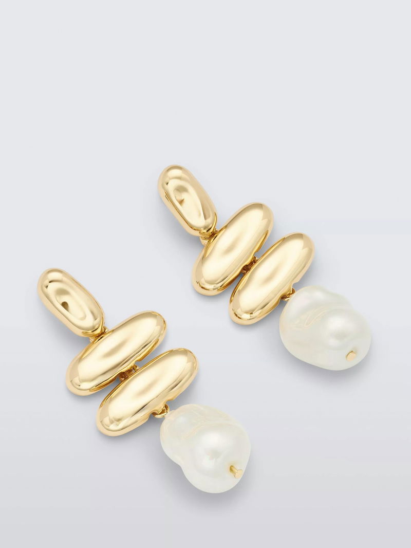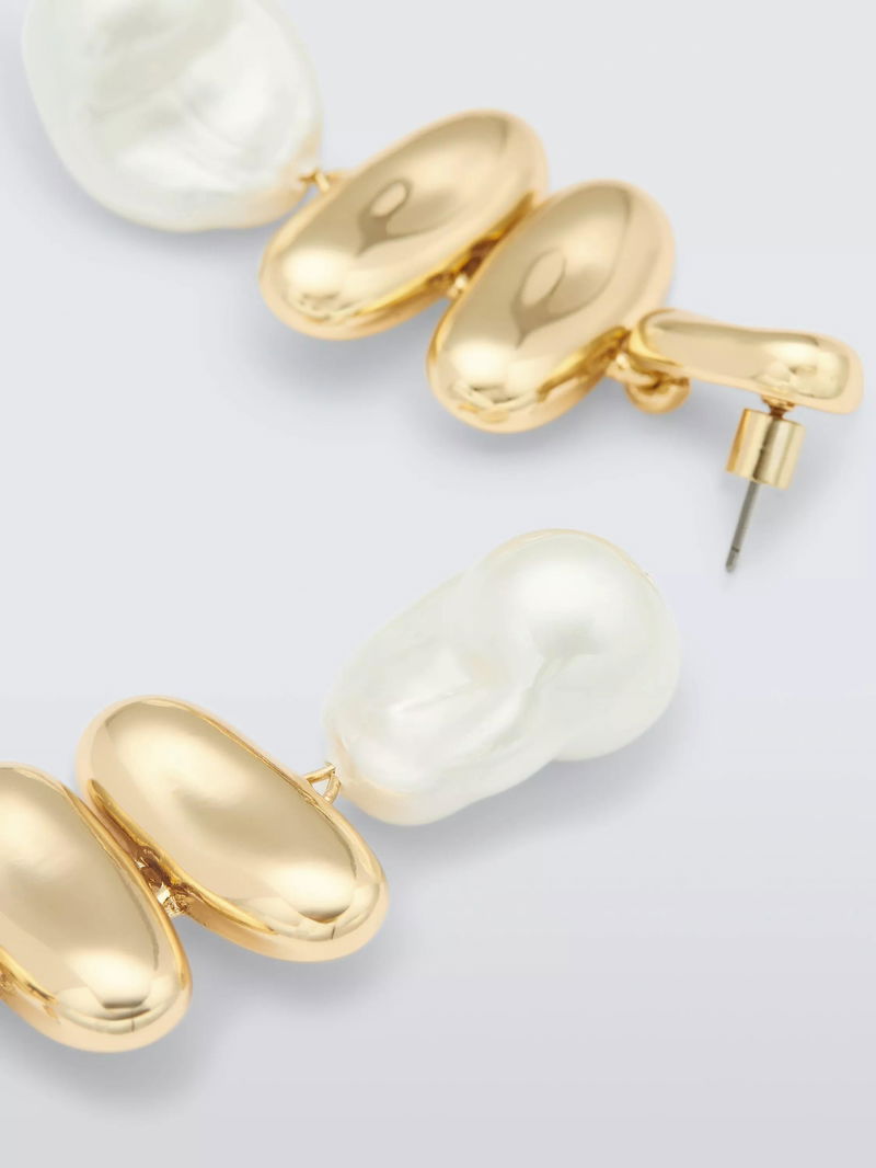 Irregular Pebble And Faux Pearl Drop Earrings, Gold/White