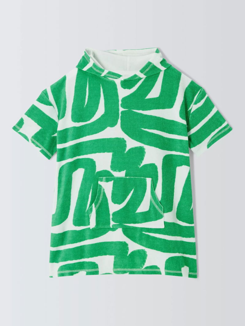 Kids' Abstract Towelling Poncho, Green