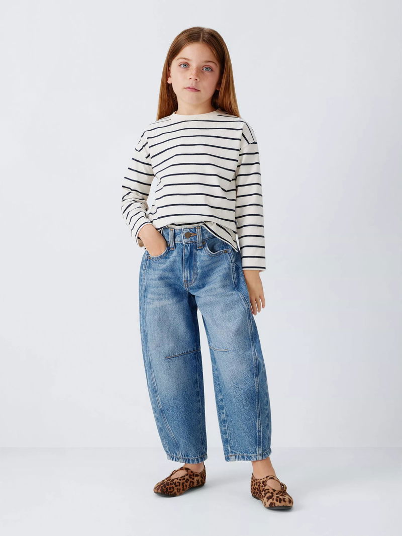 A pair of barrel leg jeans in a pure cotton denim with classic styling.