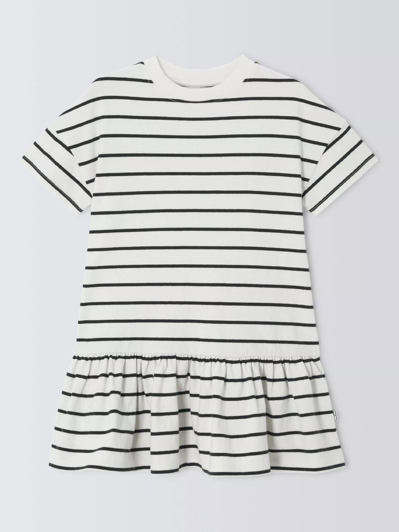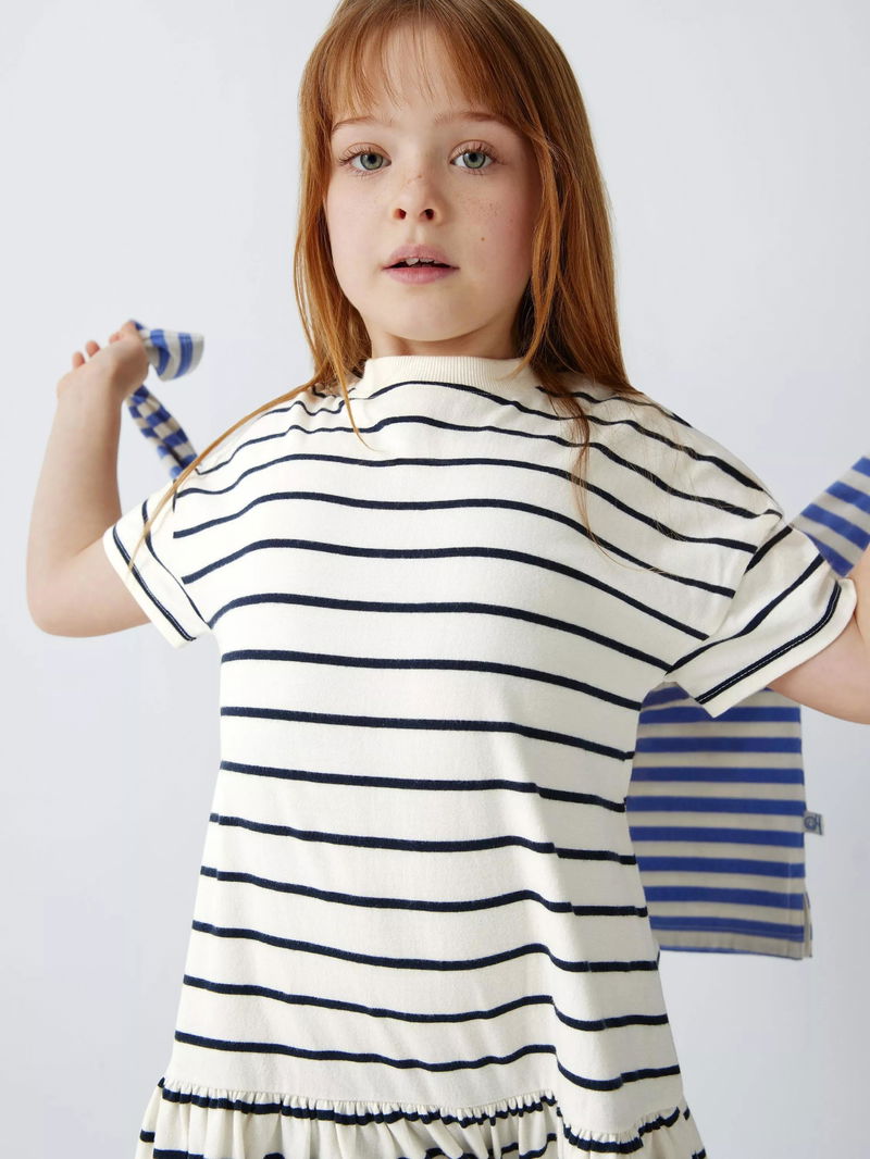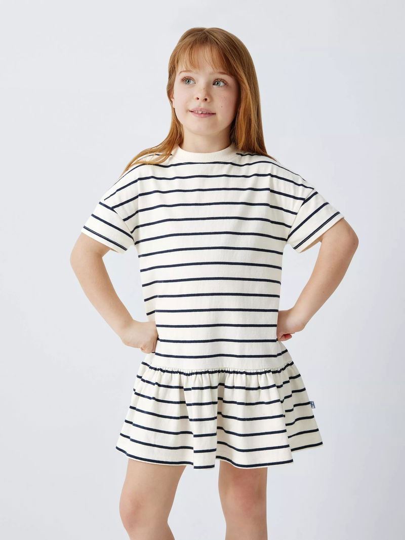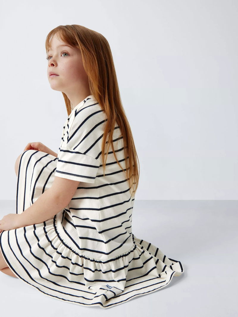 Kids' Breton Stripe Jersey Dress, Navy, White