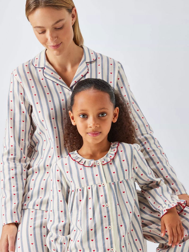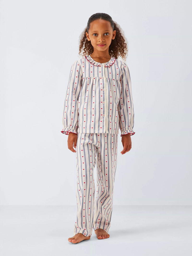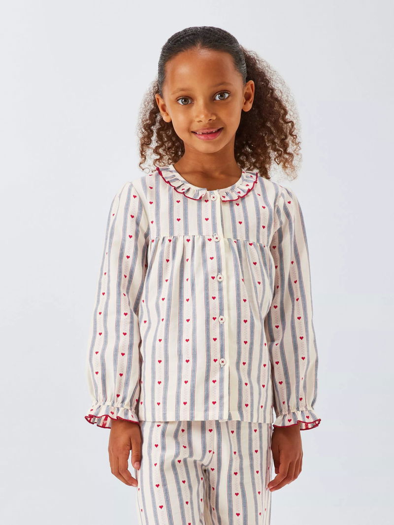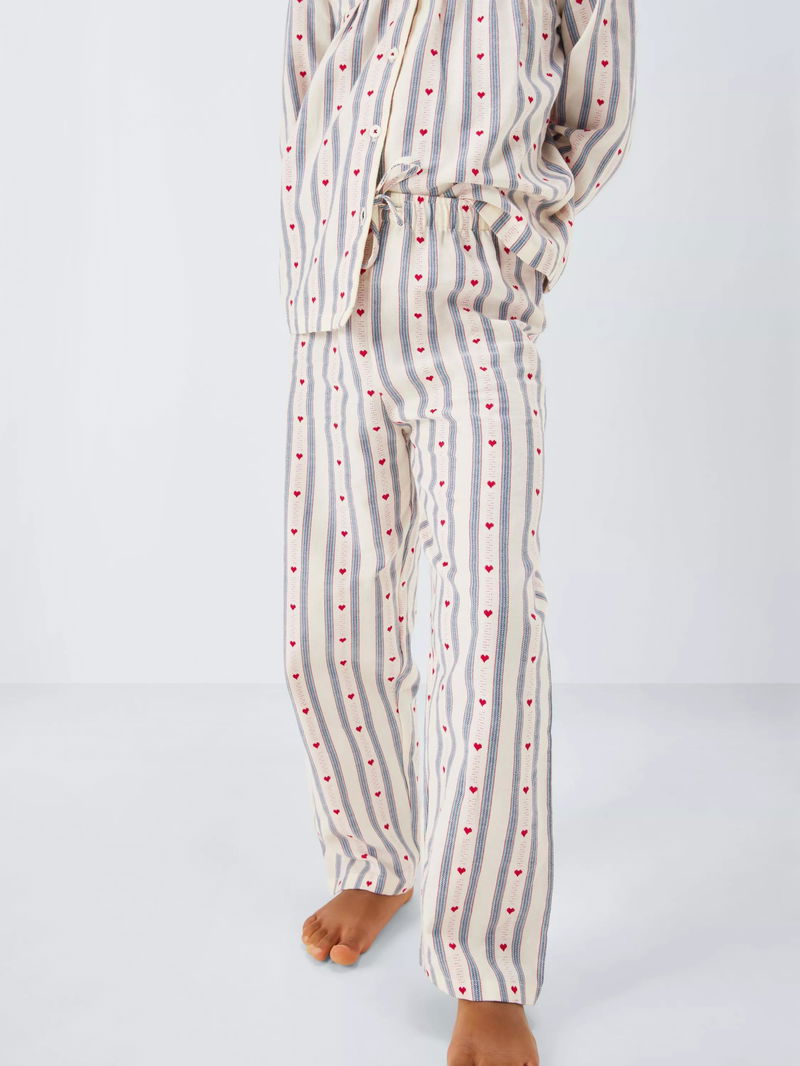 Kids' Cotton Long Sleeved Striped Heart Pyjamas, Off White
