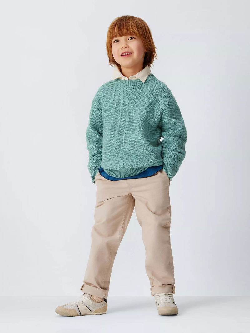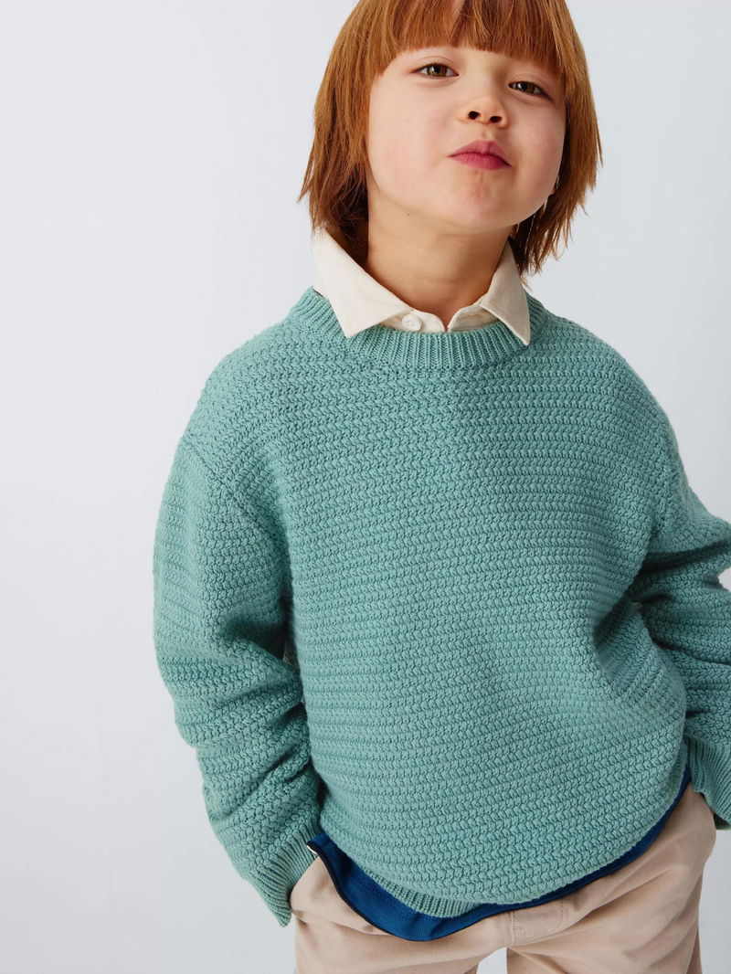 Kids' Crew Neck Basket Stitch Jumper, Mint