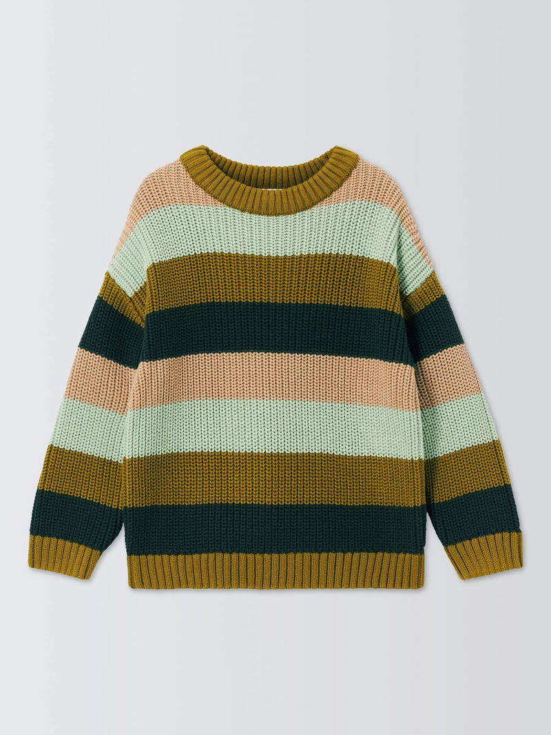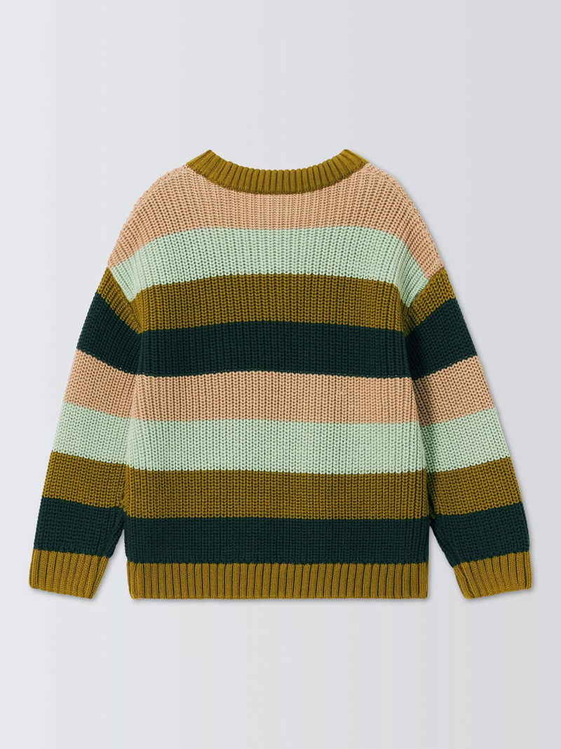 Kids' Crew Neck Block Stripe Jumper, Greens