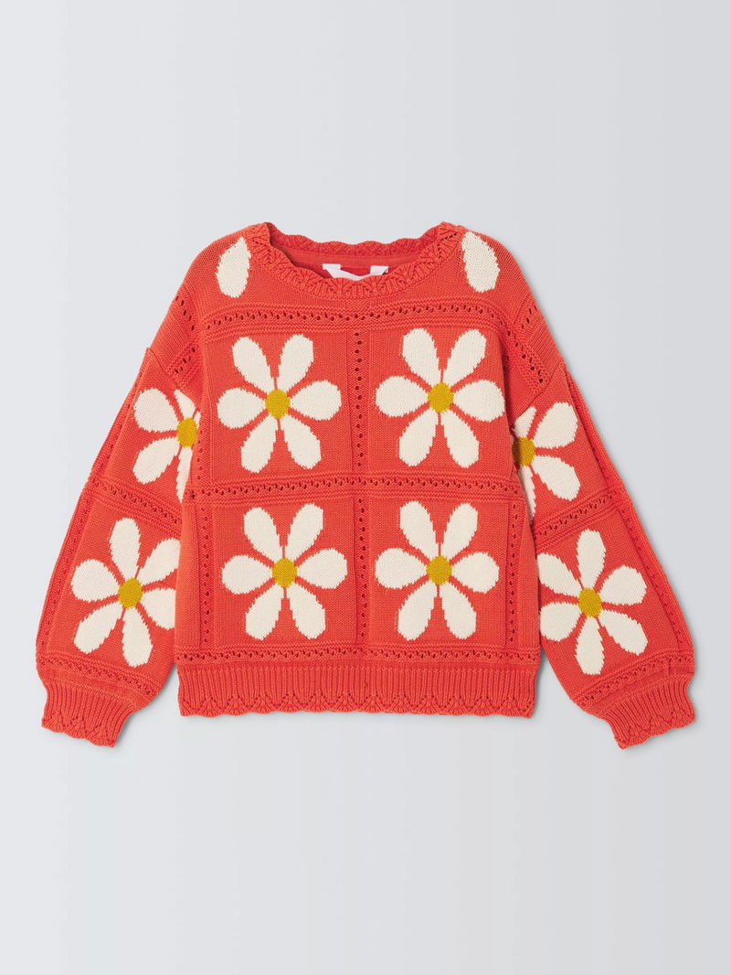 Kids' Crew Neck Daisies Jumper, Orange