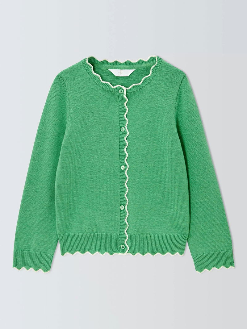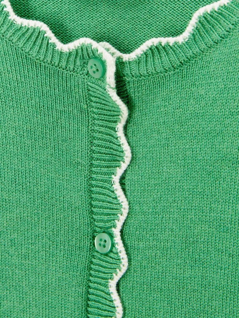 Kids' Crew Neck Scallop Trim Cardigan, Green