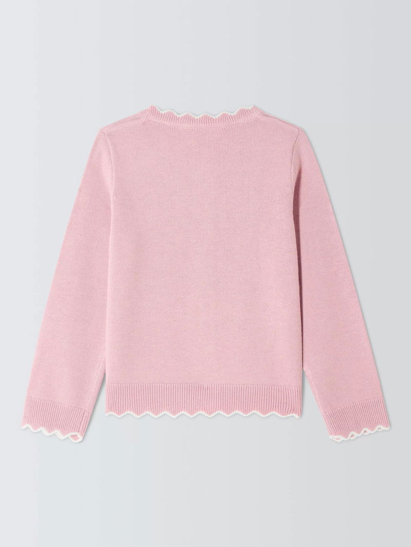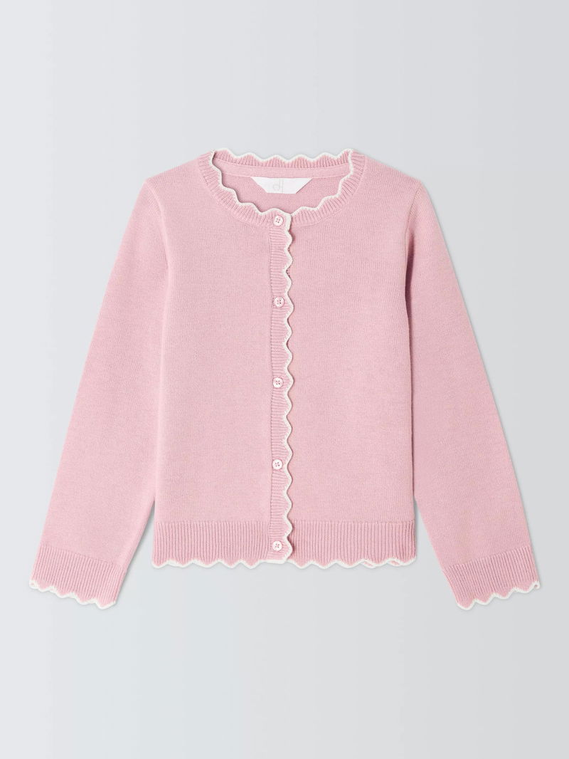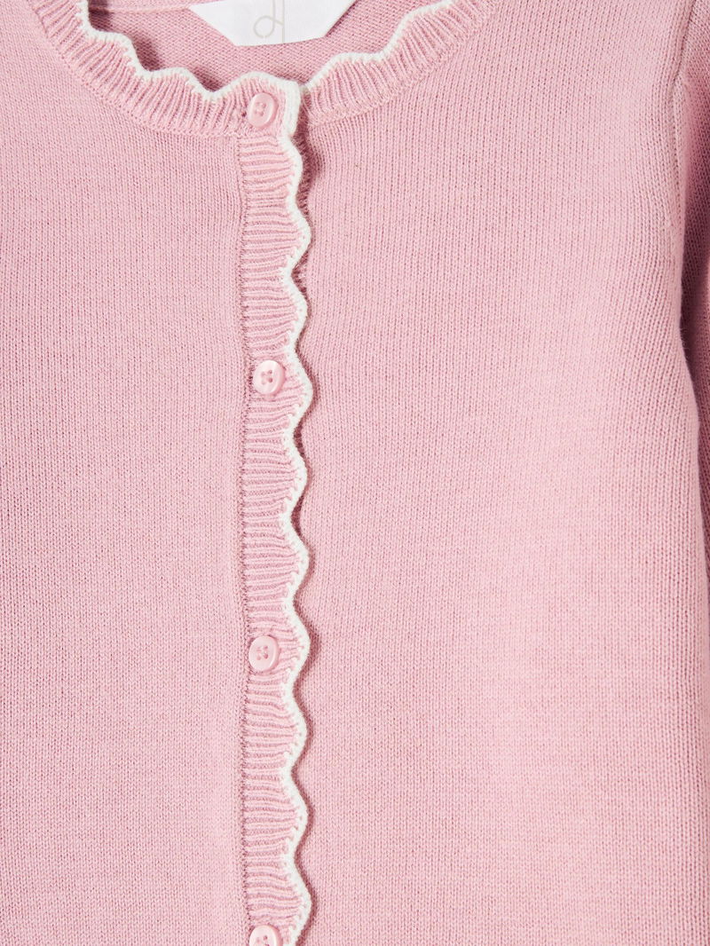Kids' Crew Neck Scallop Trim Cardigan, Pink