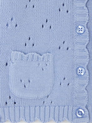 Kids' Crew Neck Scallop Trim Cardigan, White