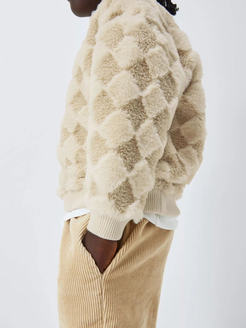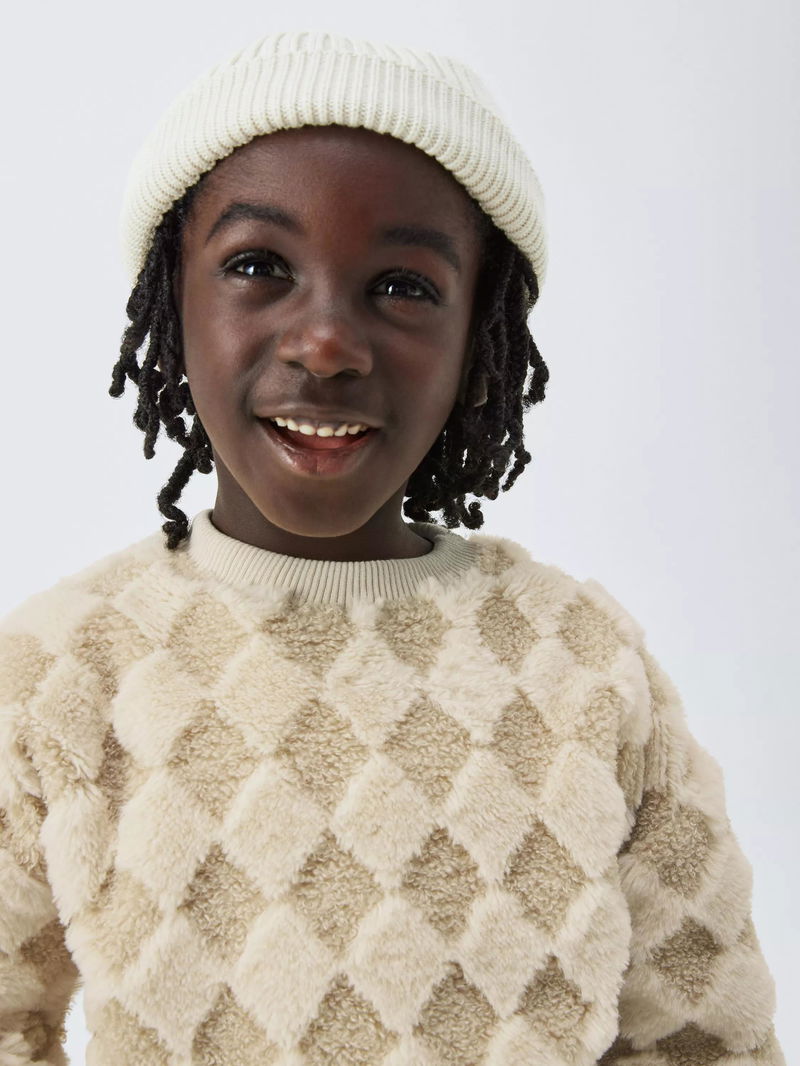 Kids' Diamond Check Boucle Sweatshirt, Natural