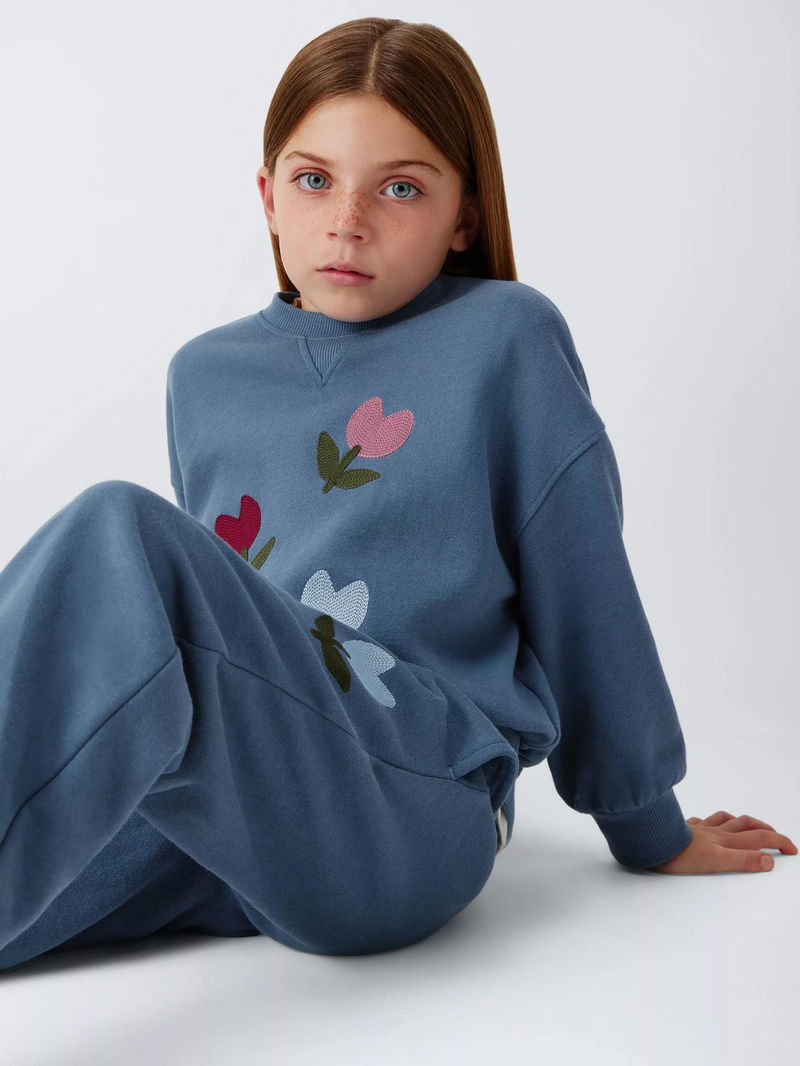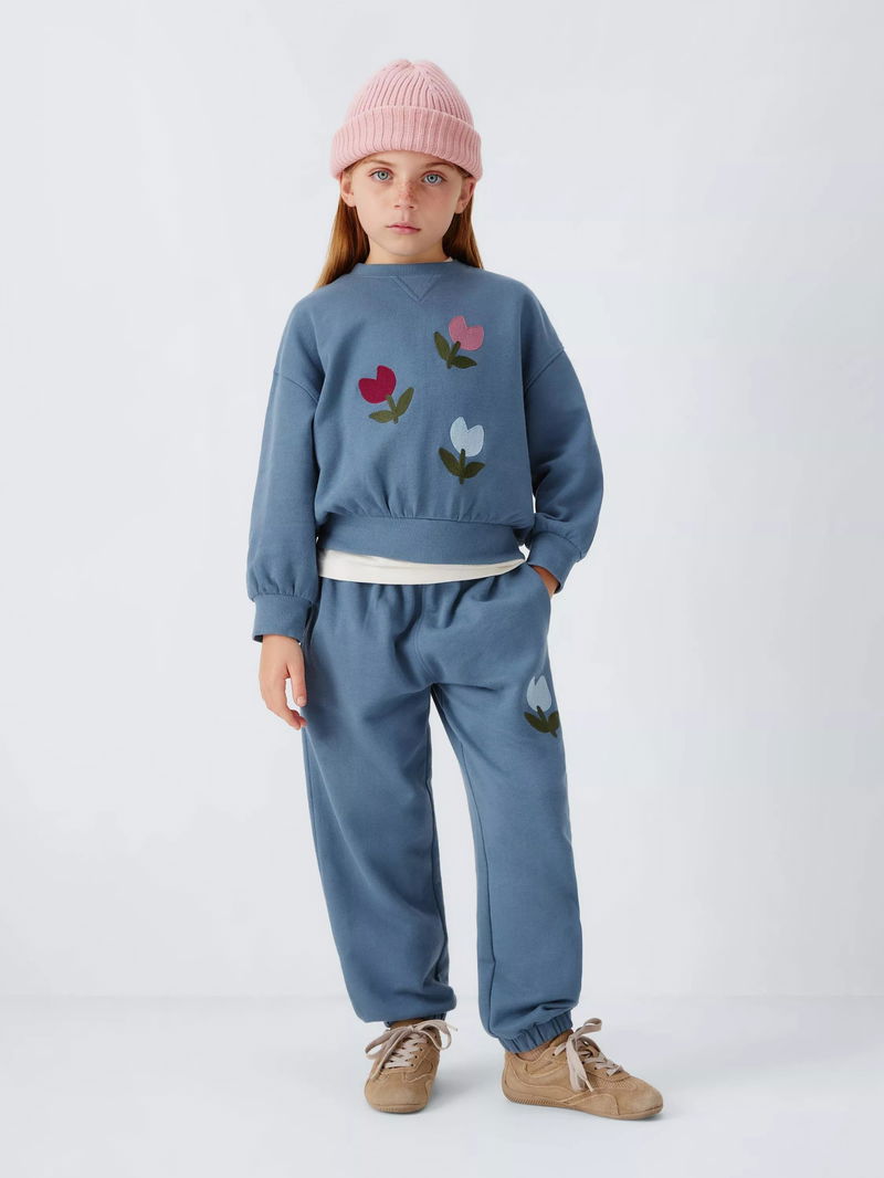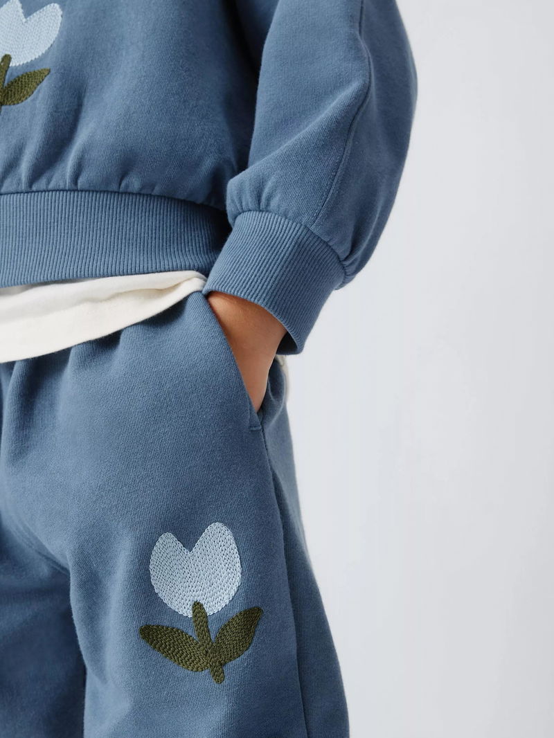 Kids' Embroidered Tulip Joggers, Blue