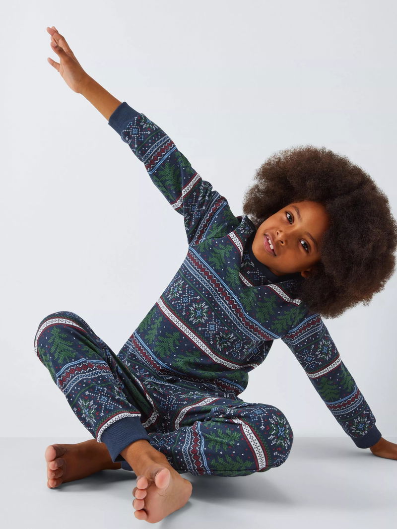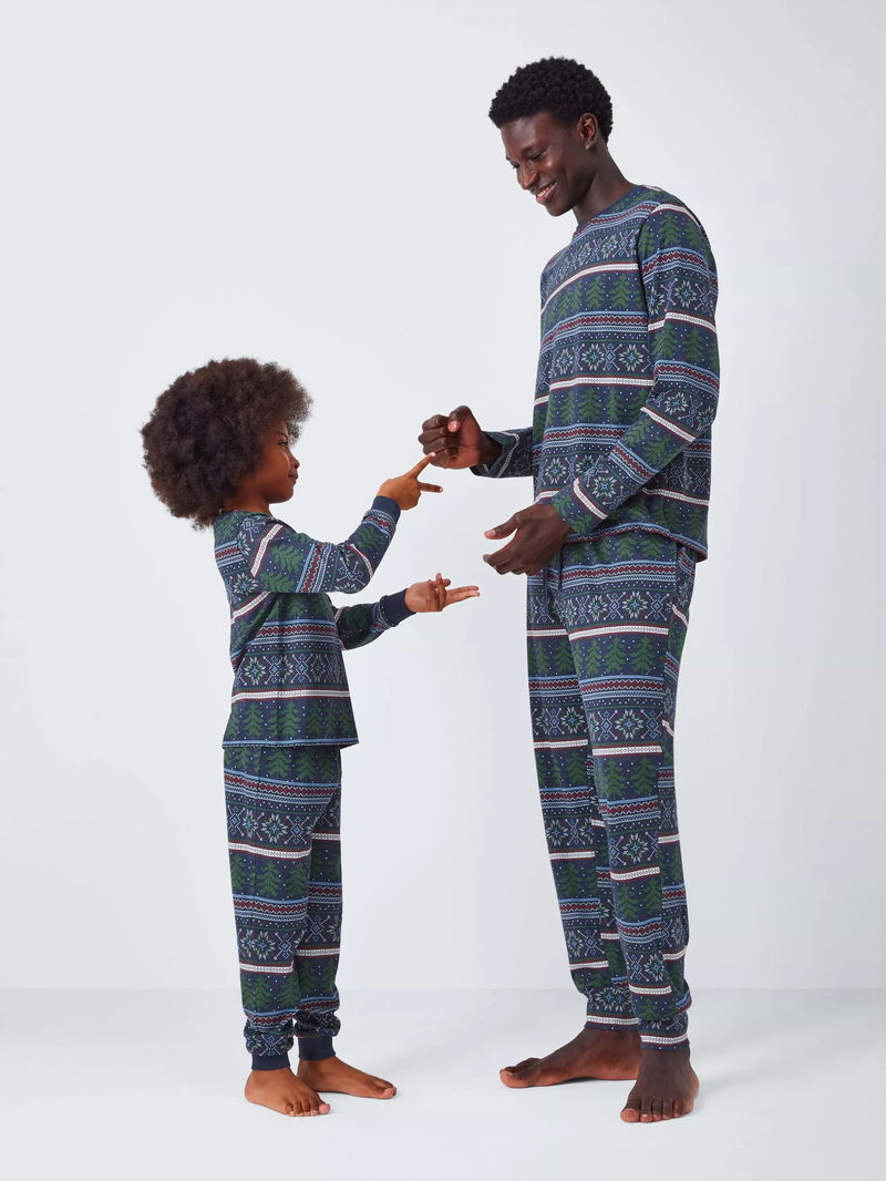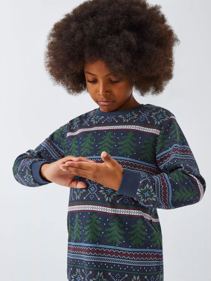 Kids' Family Fairisle Jersey Pyjamas, Navy