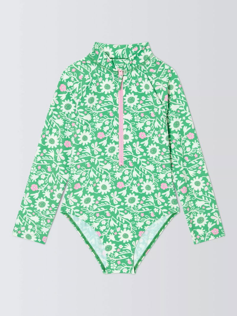 Kids' Floral Long Sleeve Swimsuit, Green