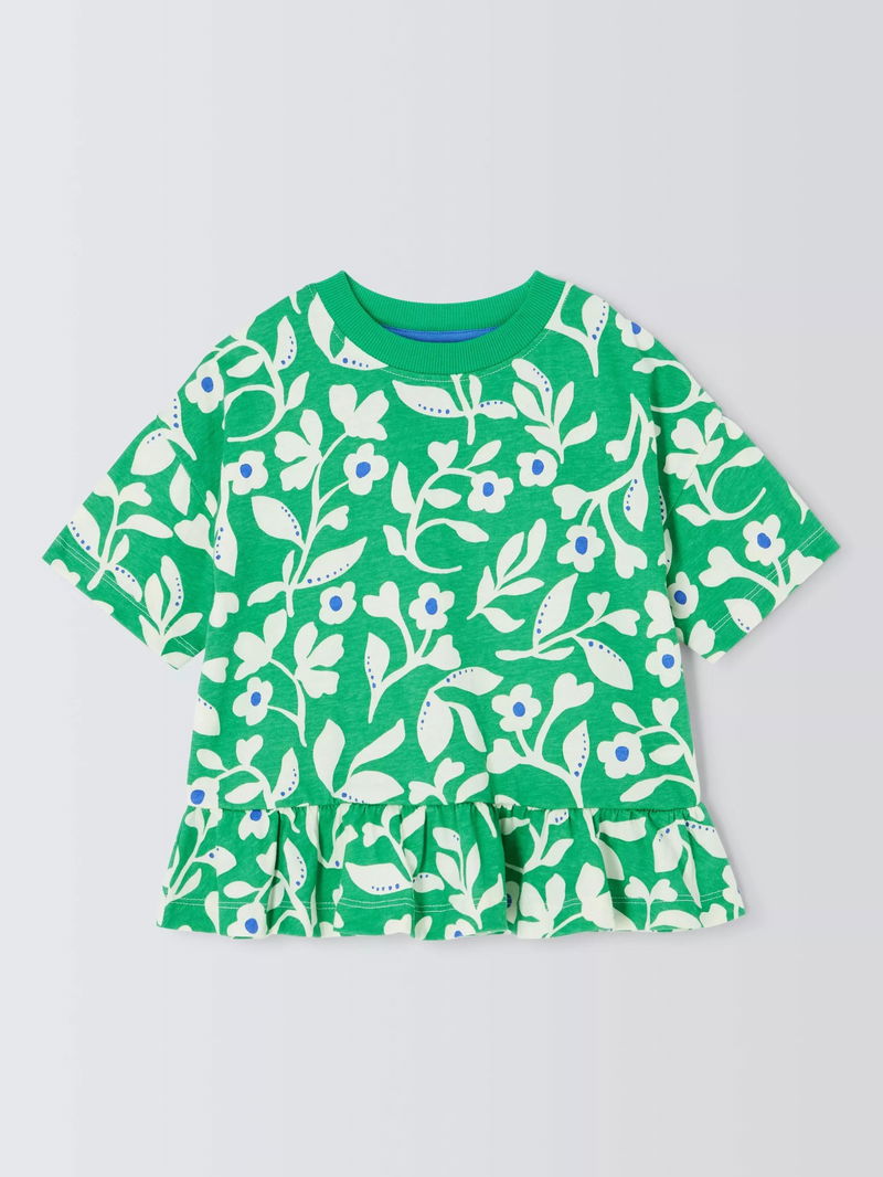 Kids' Floral Peplum Hem T-Shirt, Green, White