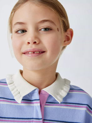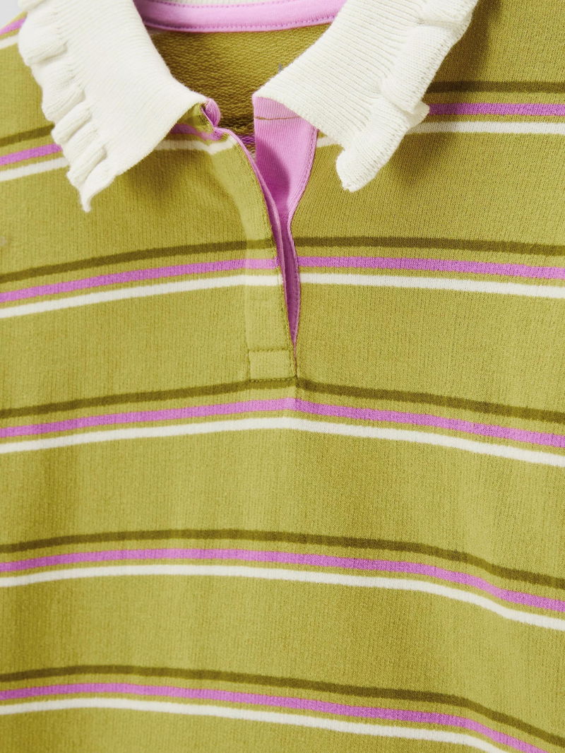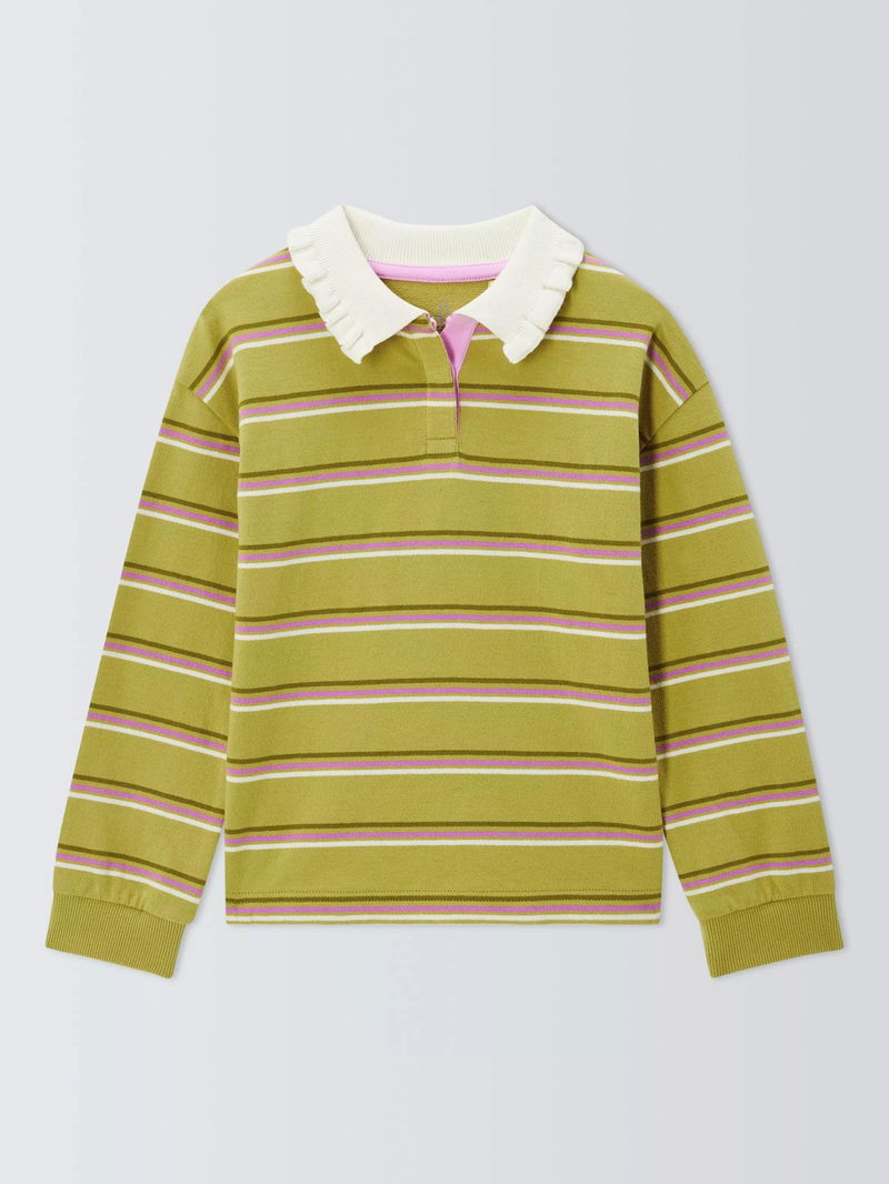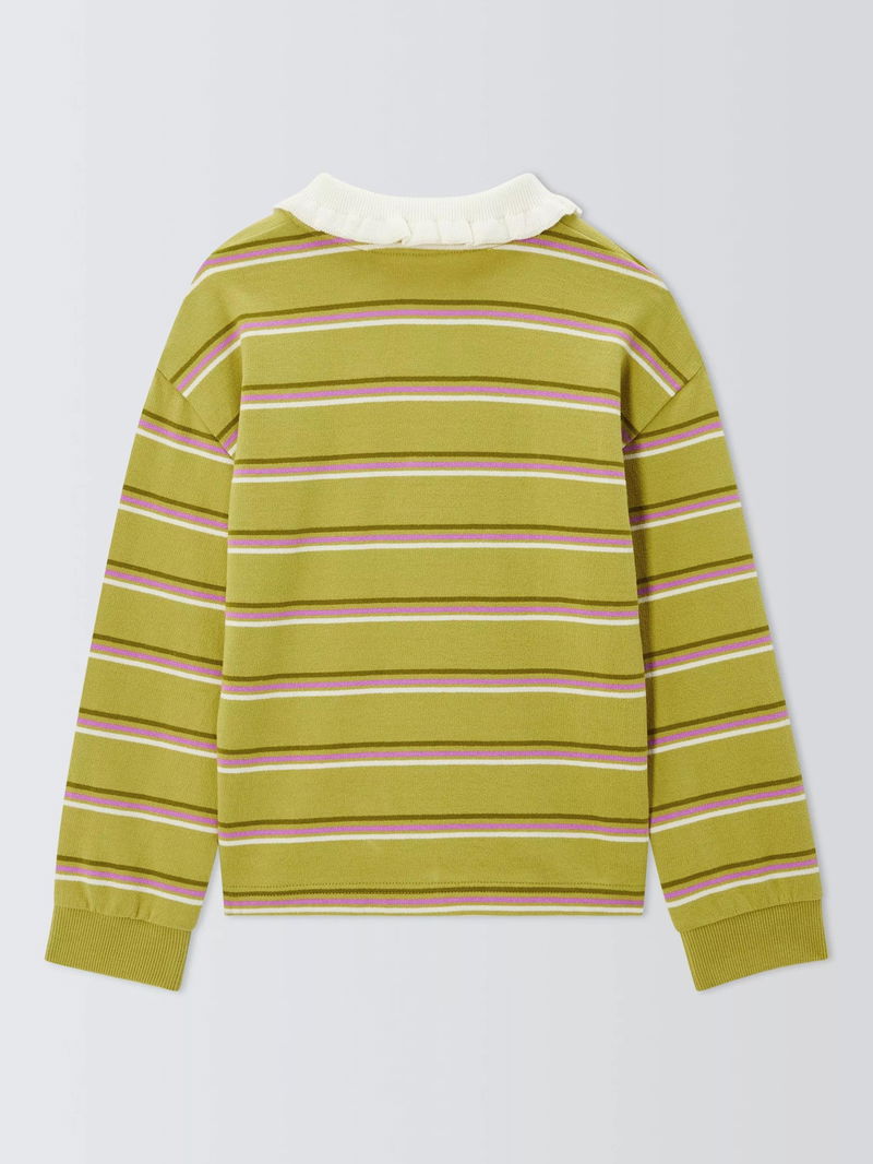 Kids' Frill Collar Stripe Rugby Shirt, Green, Cream