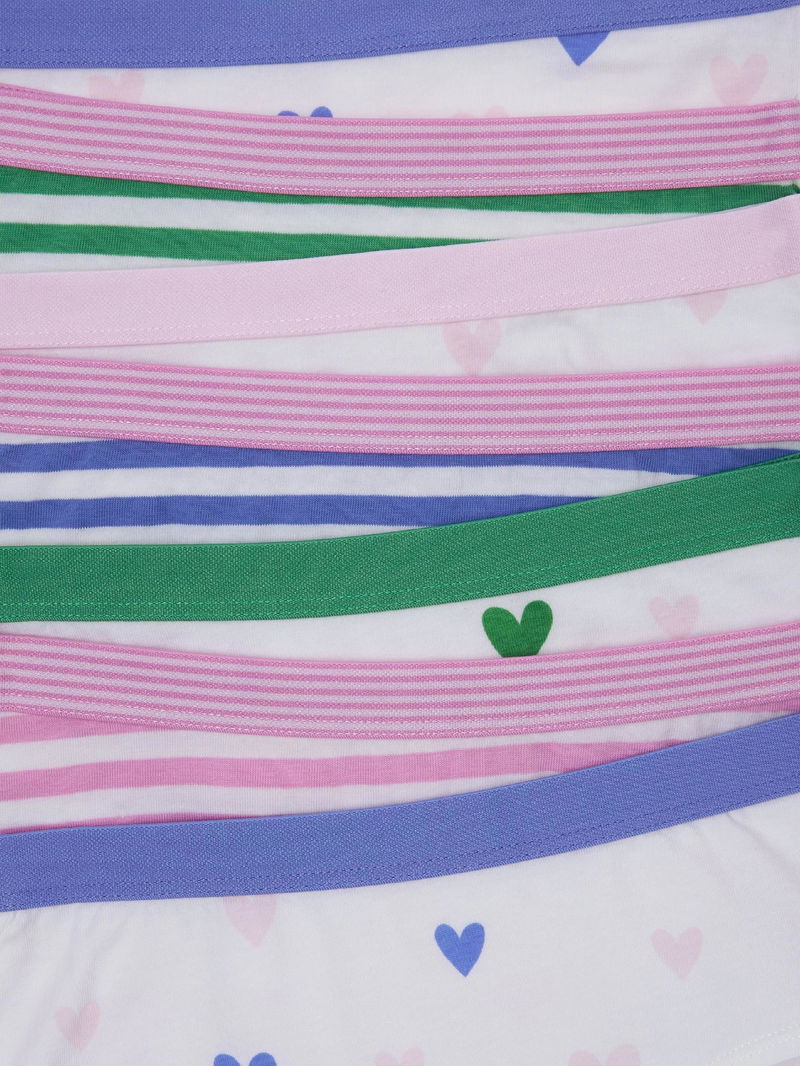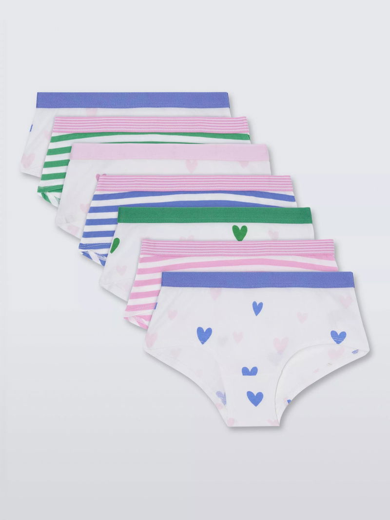 Kids' Hearts & Stripes Shortie Knickers, Pack Of 7, Multi