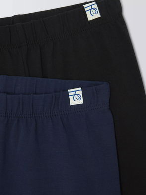 A set of two leggings, both made from 100% cotton jersey.