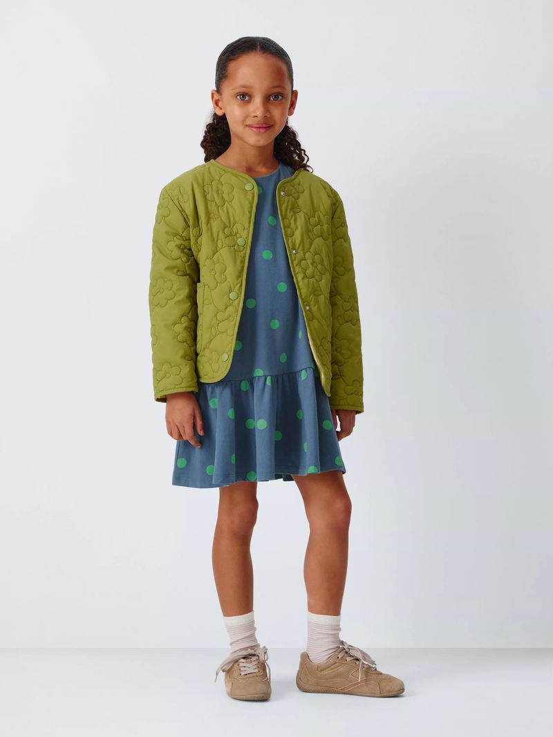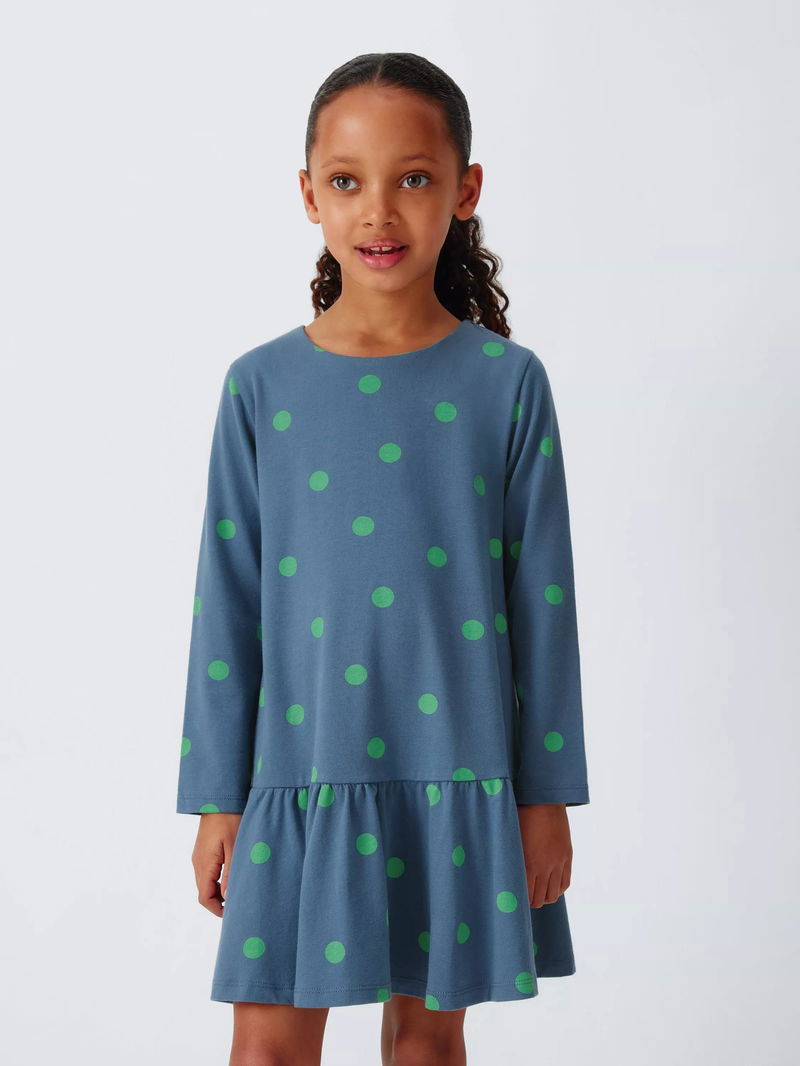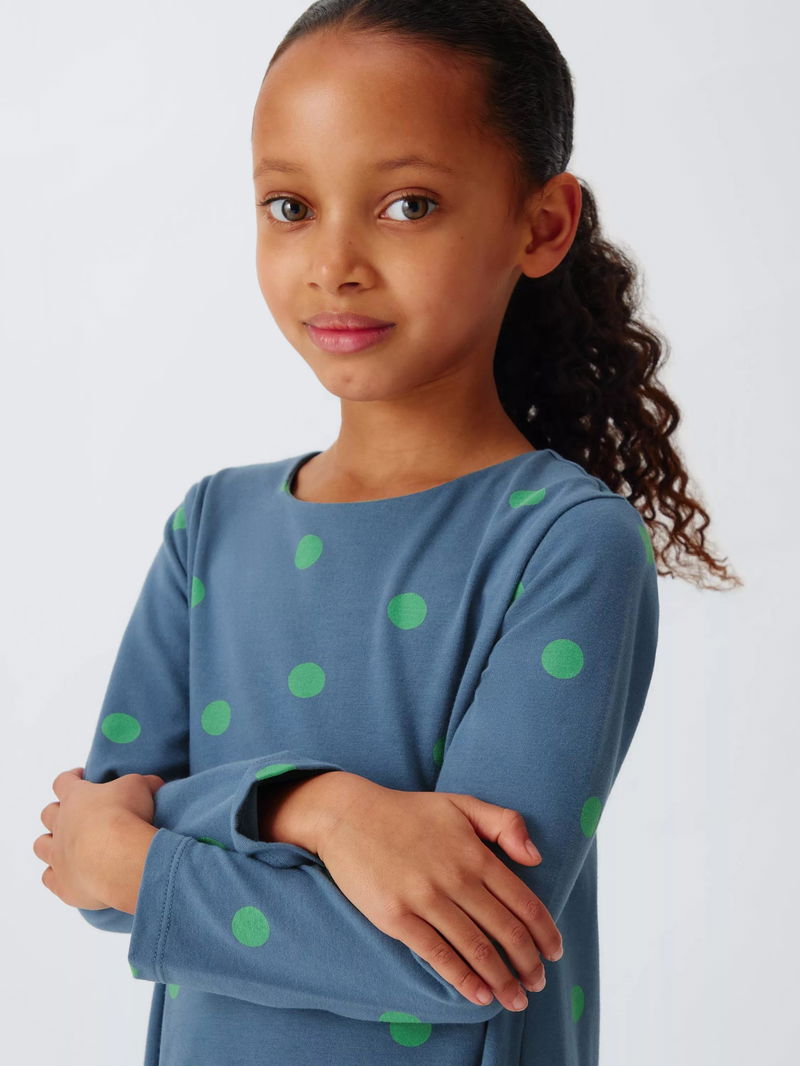 Kids' Jersey Polka Dot Dress, Navy, Green