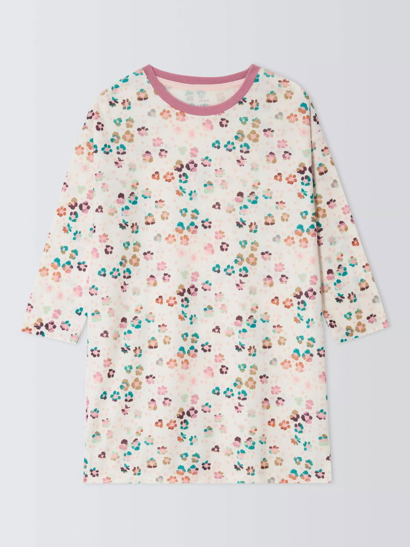 Kids' Long Sleeved Printed Nightdress, White Multi