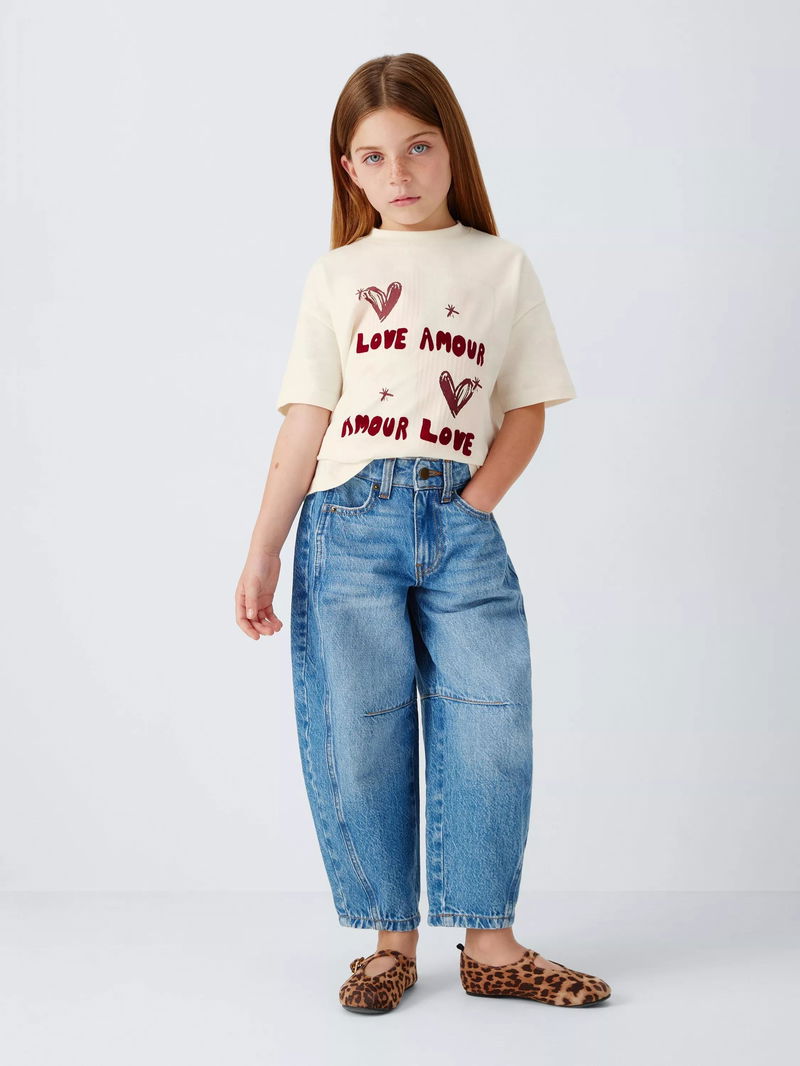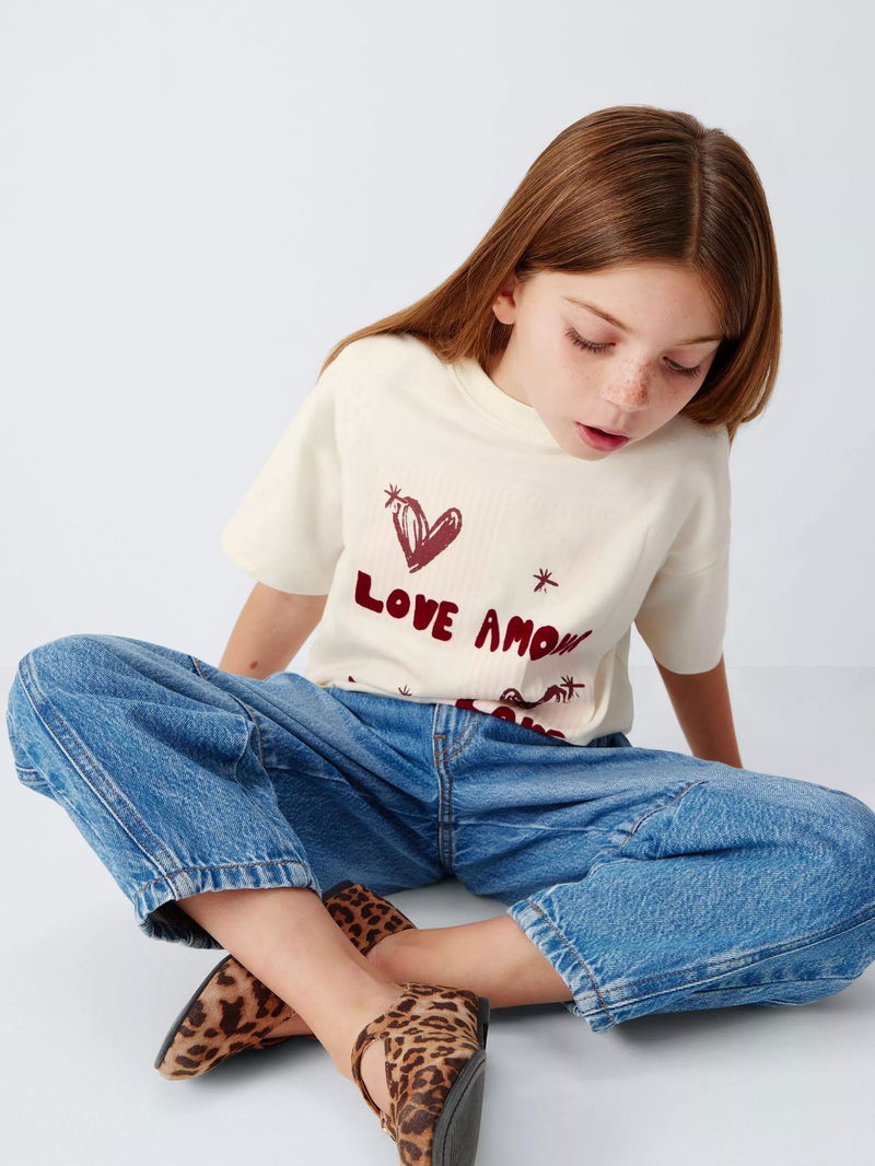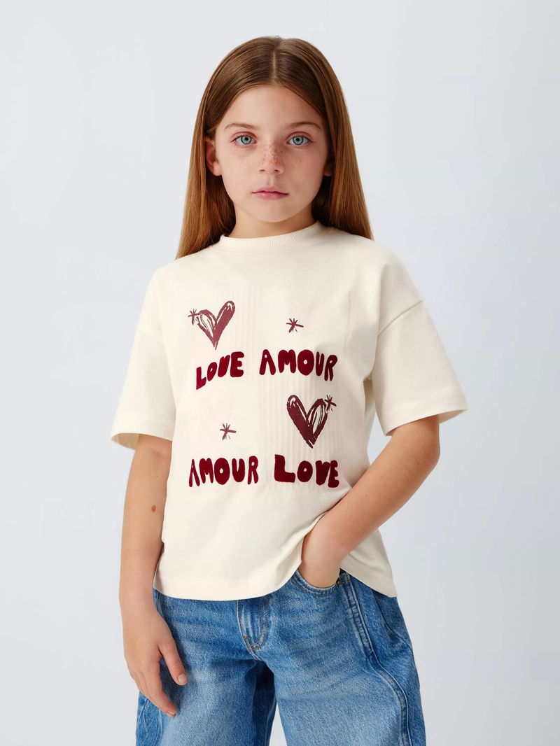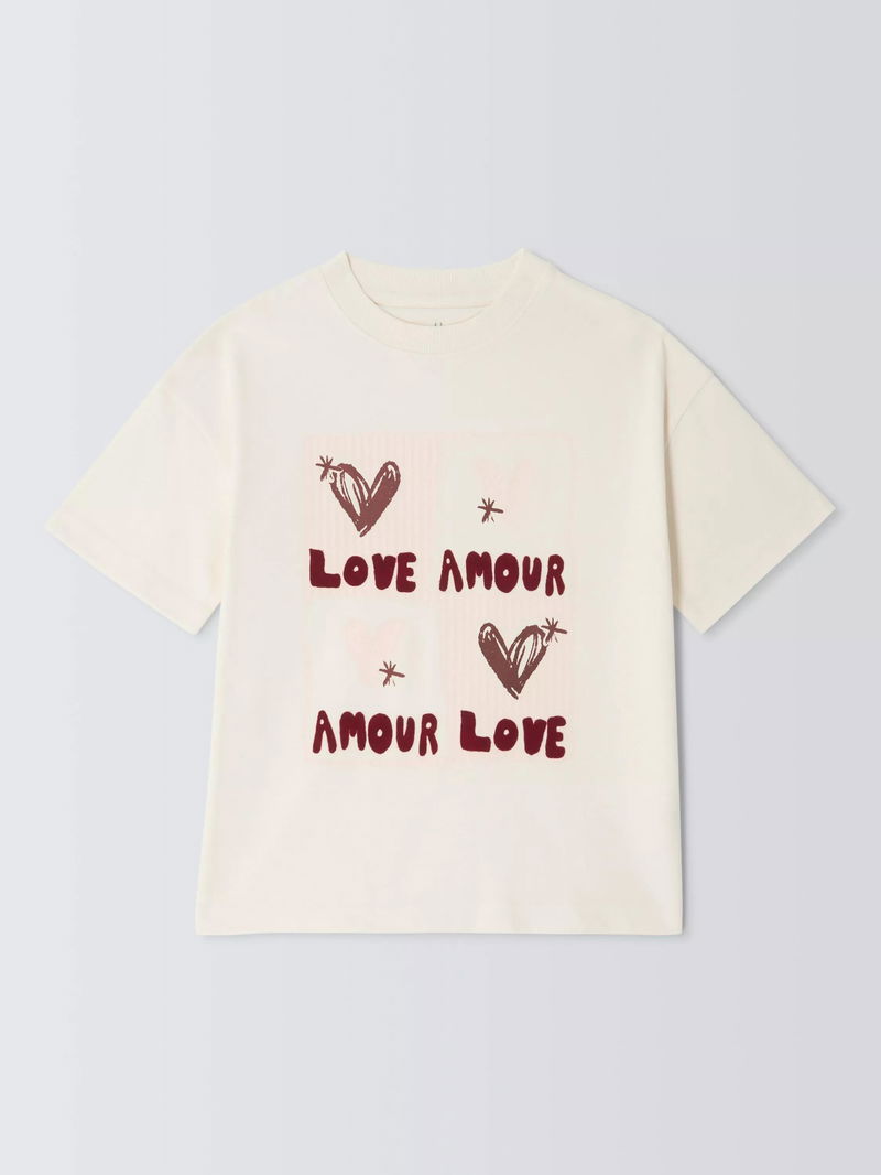 Kids' Love Amour Short Sleeve T-Shirt, Cream/Pink