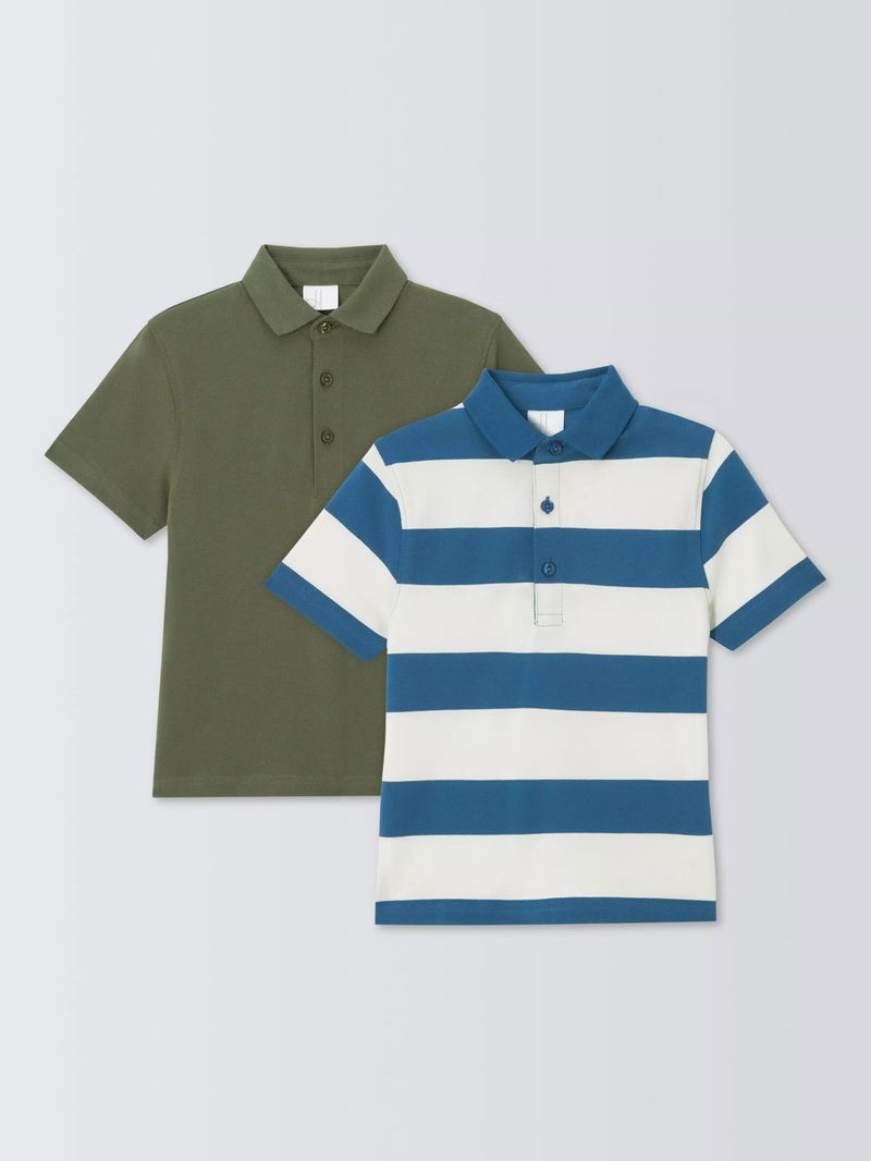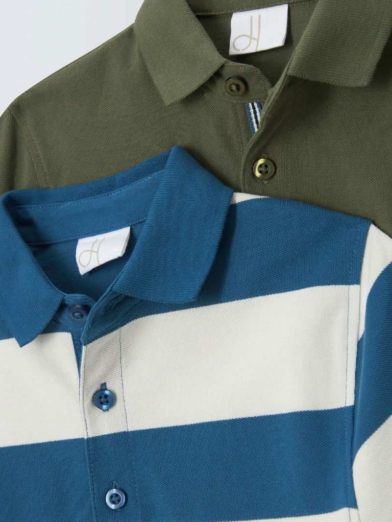 Kids' Plain/Stripe Pique Polo Shirts, Pack Of 2, Multi