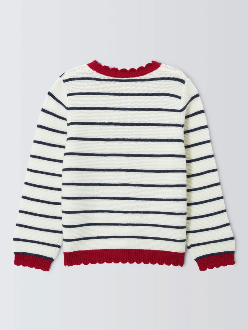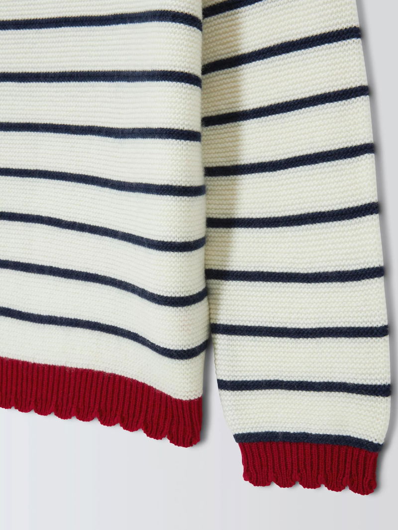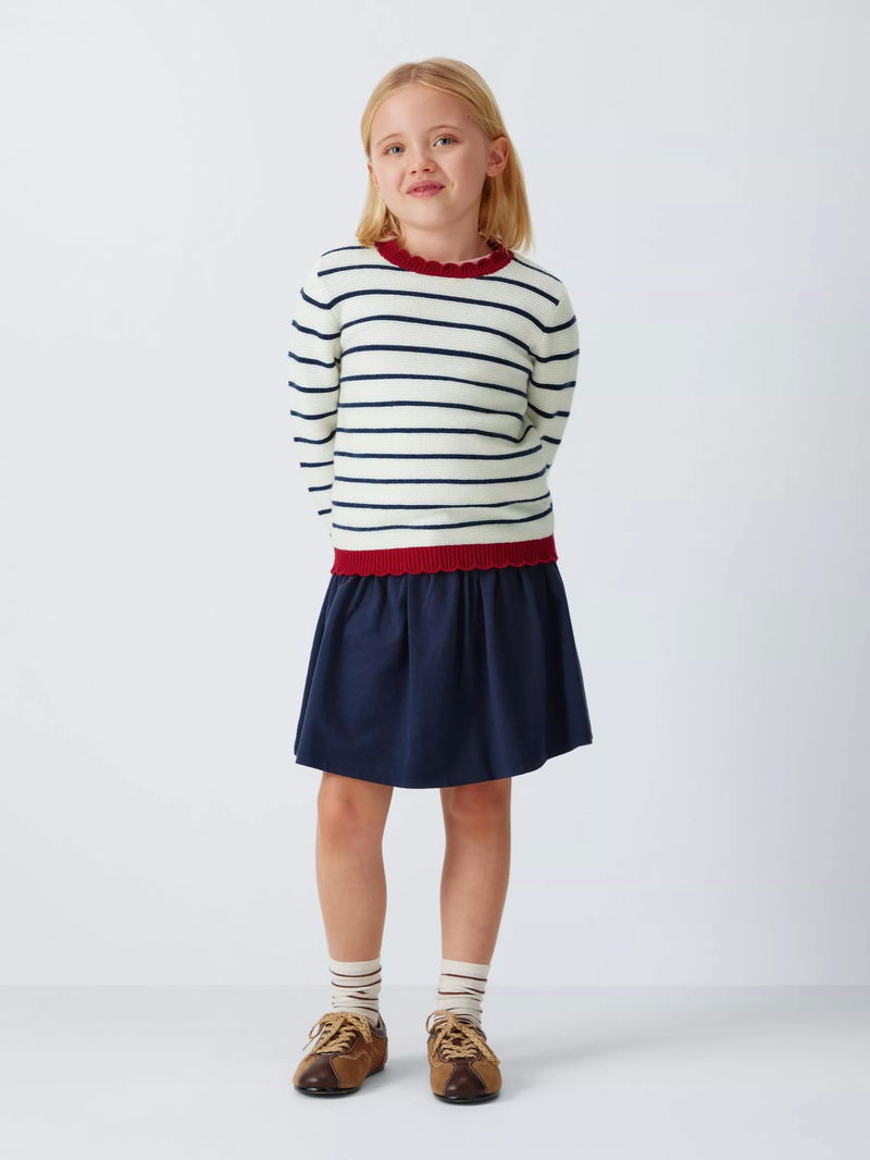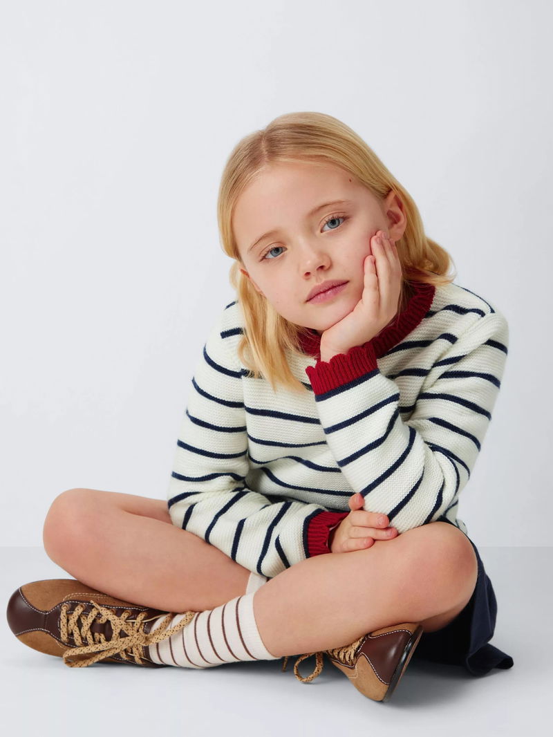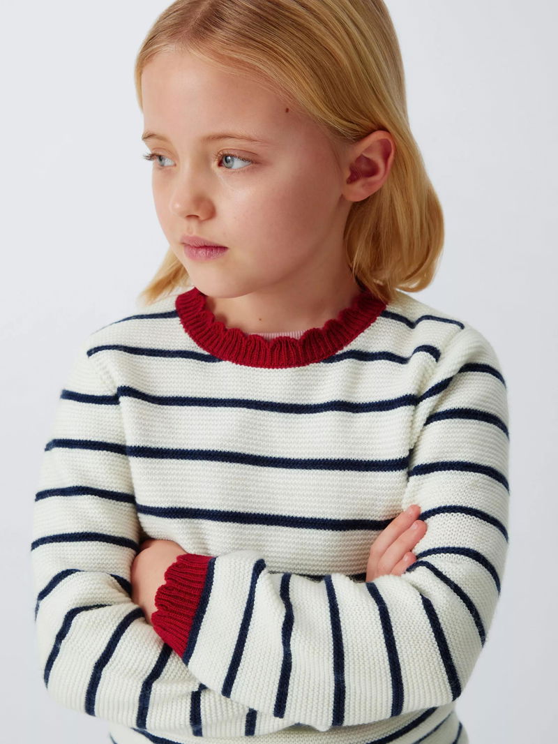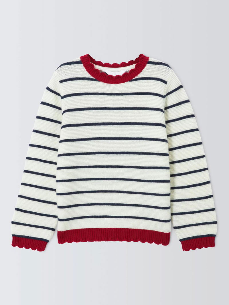 With colour contrast, scalloped edges, this jumper offers a new twist on the classic striped knit.