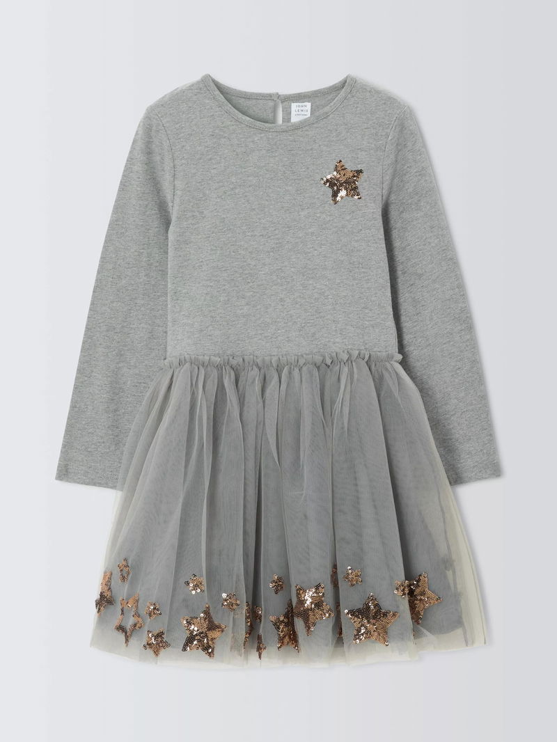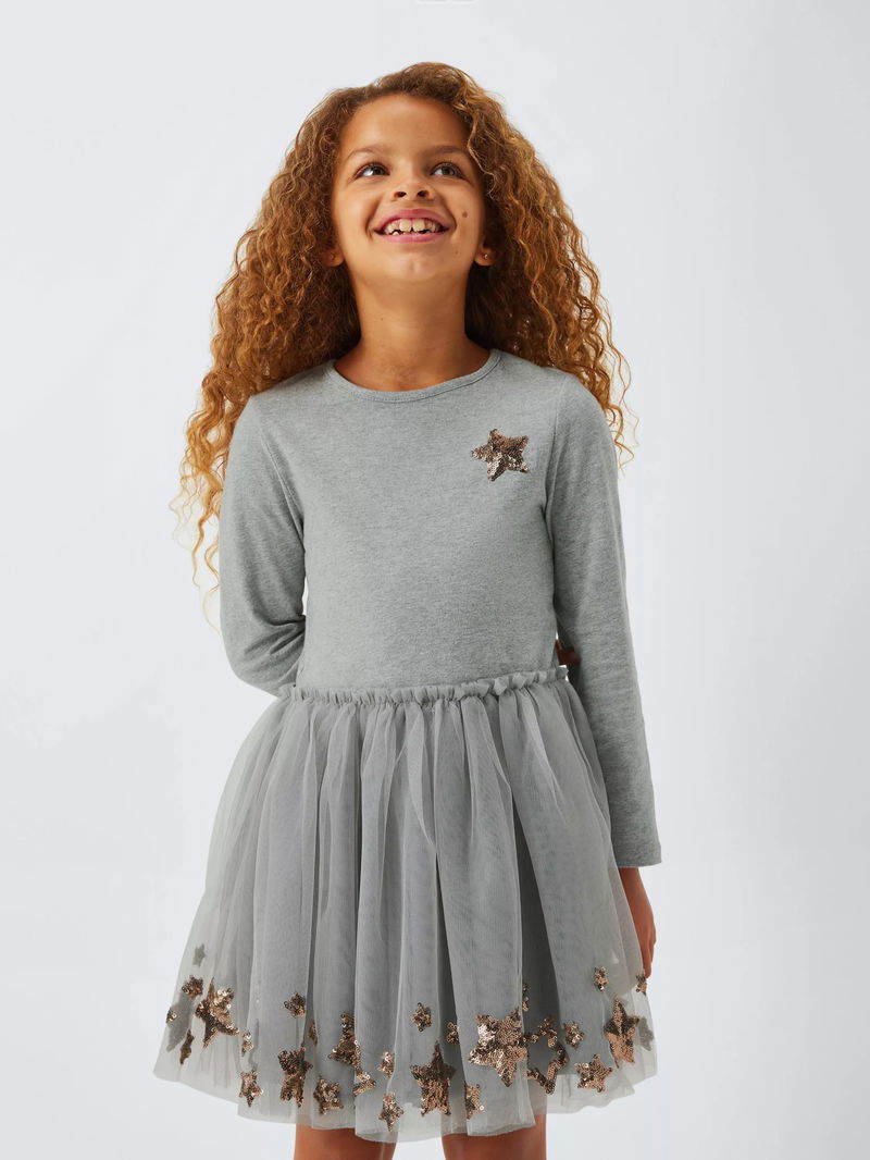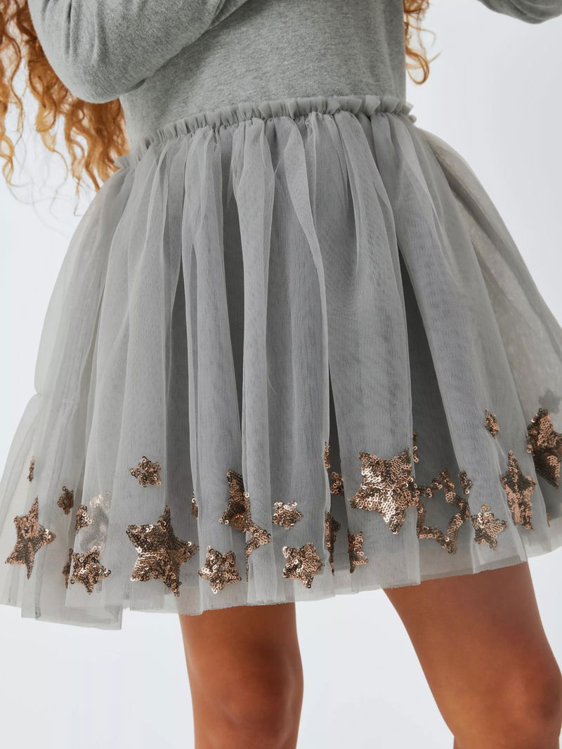 Kids' Sequin Star Tulle Party Dress, Grey