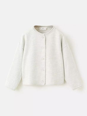 Kids' Spongy Yarn Crew Neck Cardigan, Grey