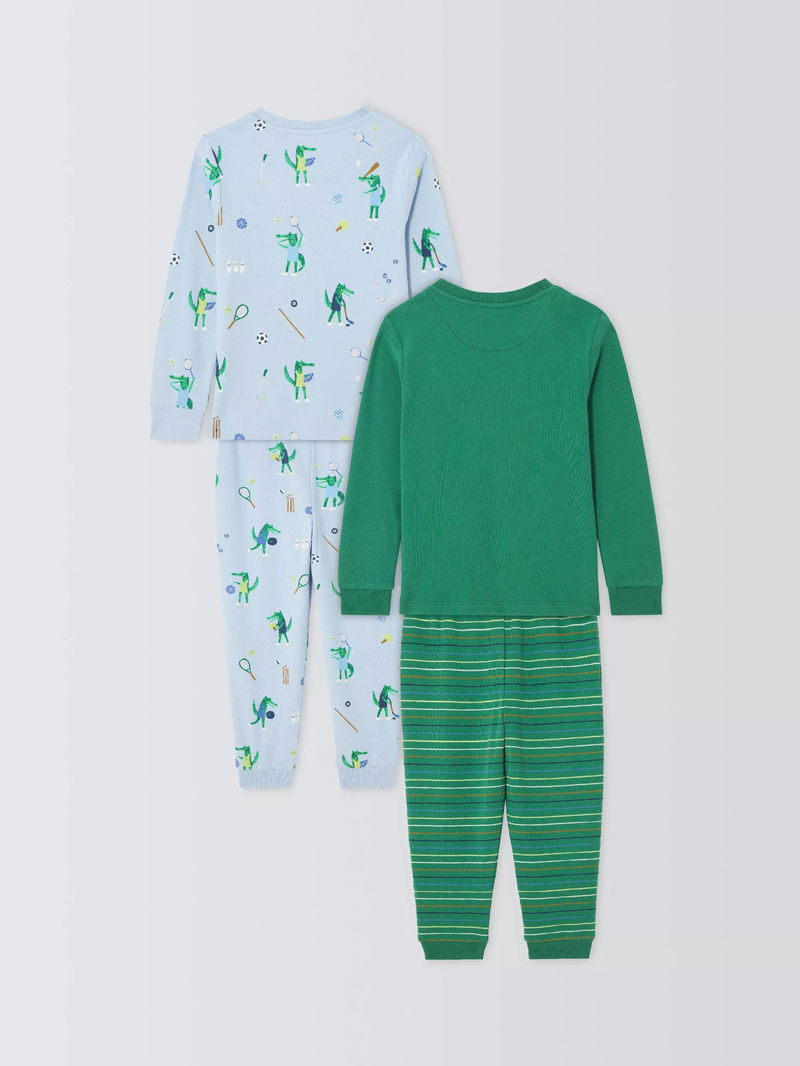 Kids' Sporty Crocodile Pyjamas, Pack Of 2, Green