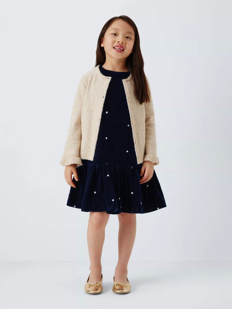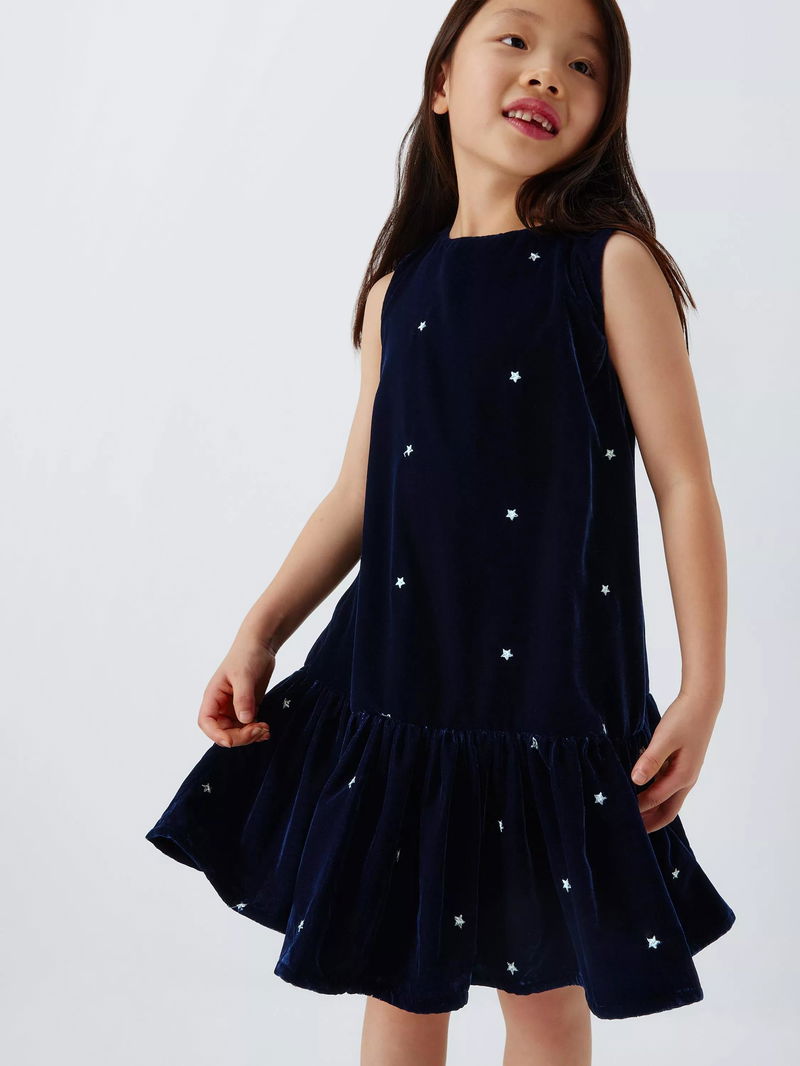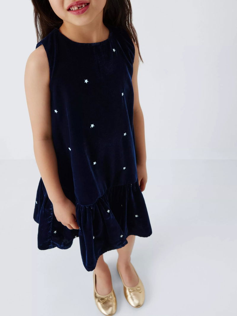 Kids' Stars Velvet Ruffle Hem Party Dress, Blue