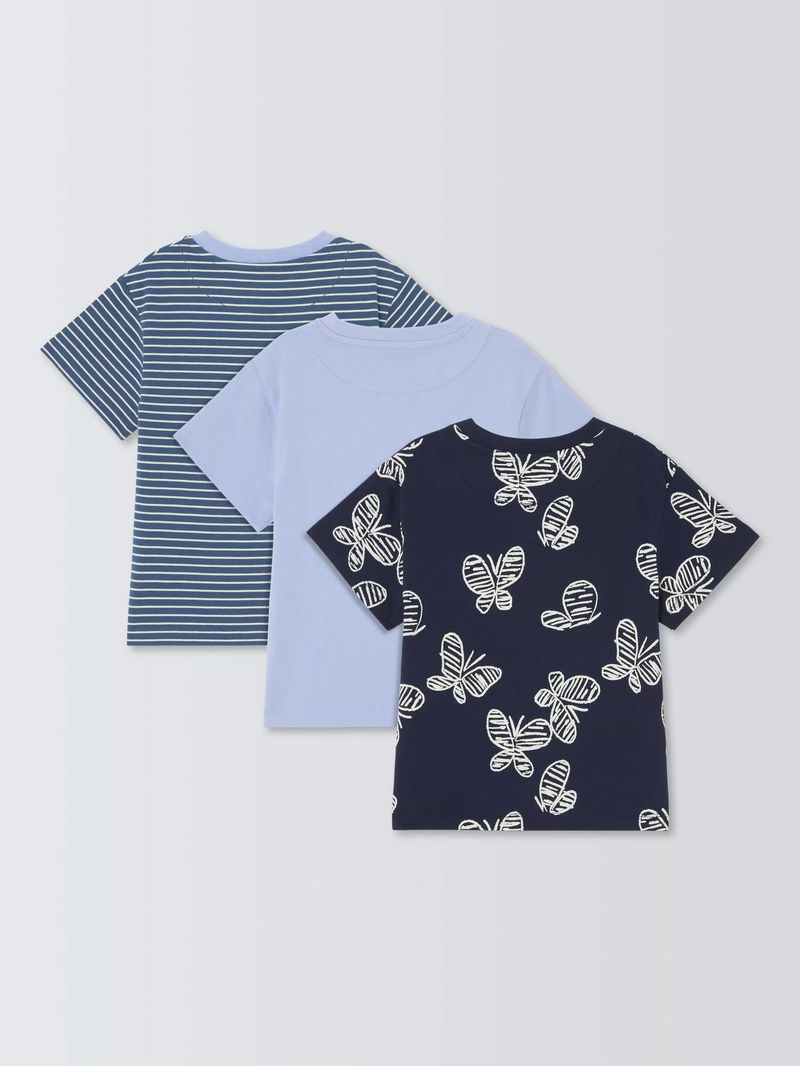 Kids' Stripe/Plain/Butterfly T-Shirts, Pack Of 3, Multi
