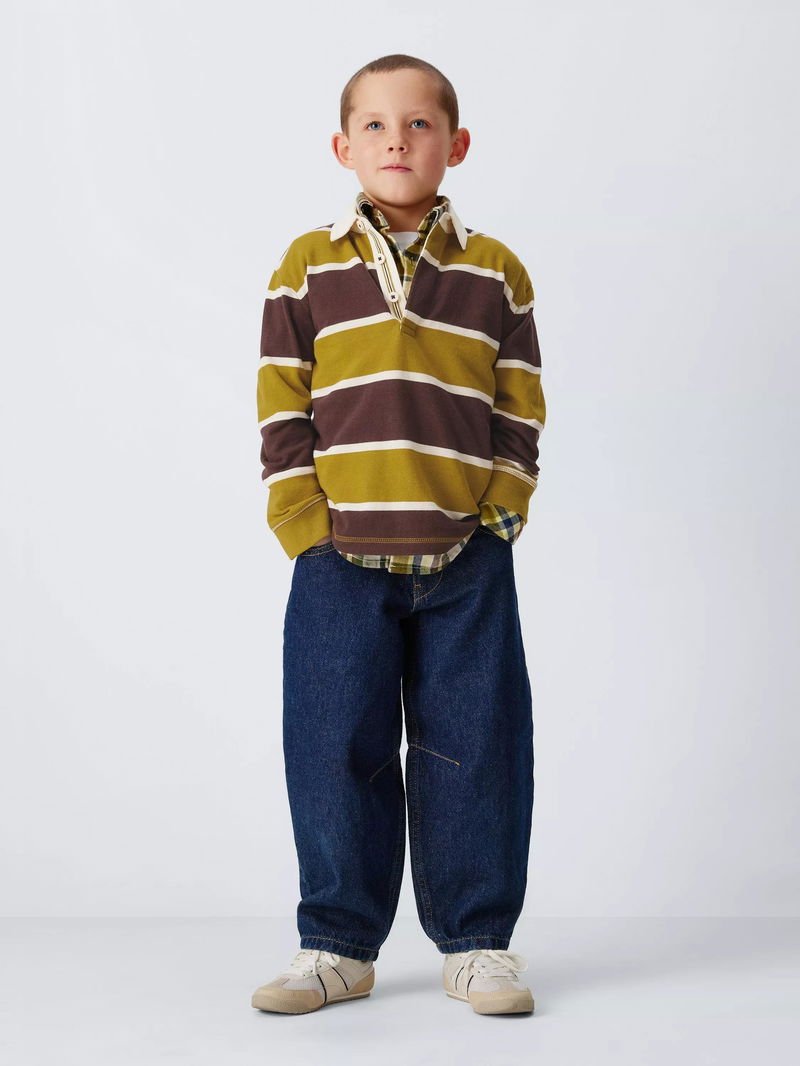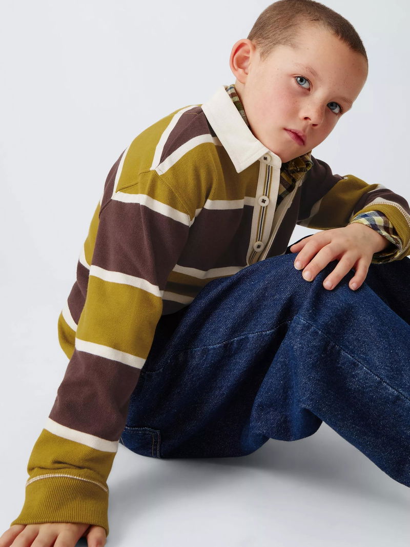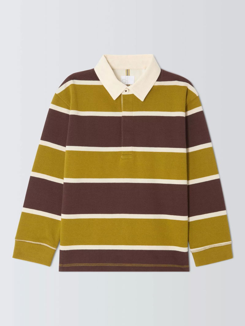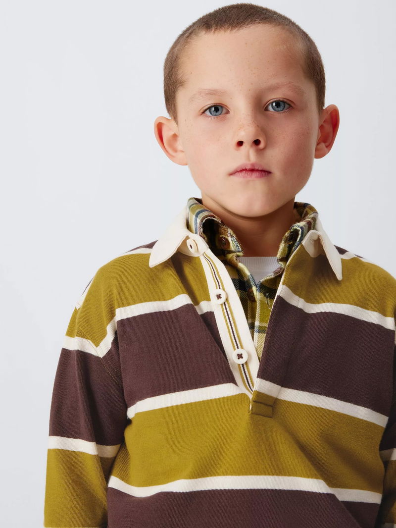 Kids' Stripe Rugby Shirt, Green/Brown
